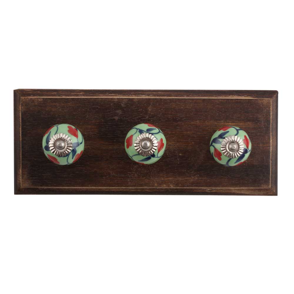 Red Anthurium Ceramic Wooden Hook. A Perfect Complement to the Soft Tone of the Wood are these White Traditional Hat & Coat Hook Made of Genuine Porcelain and Brass. It can be use to Hang Jewellery, Leashes, Towels, Scarves, Light Weight Sweaters, Caps Etc.