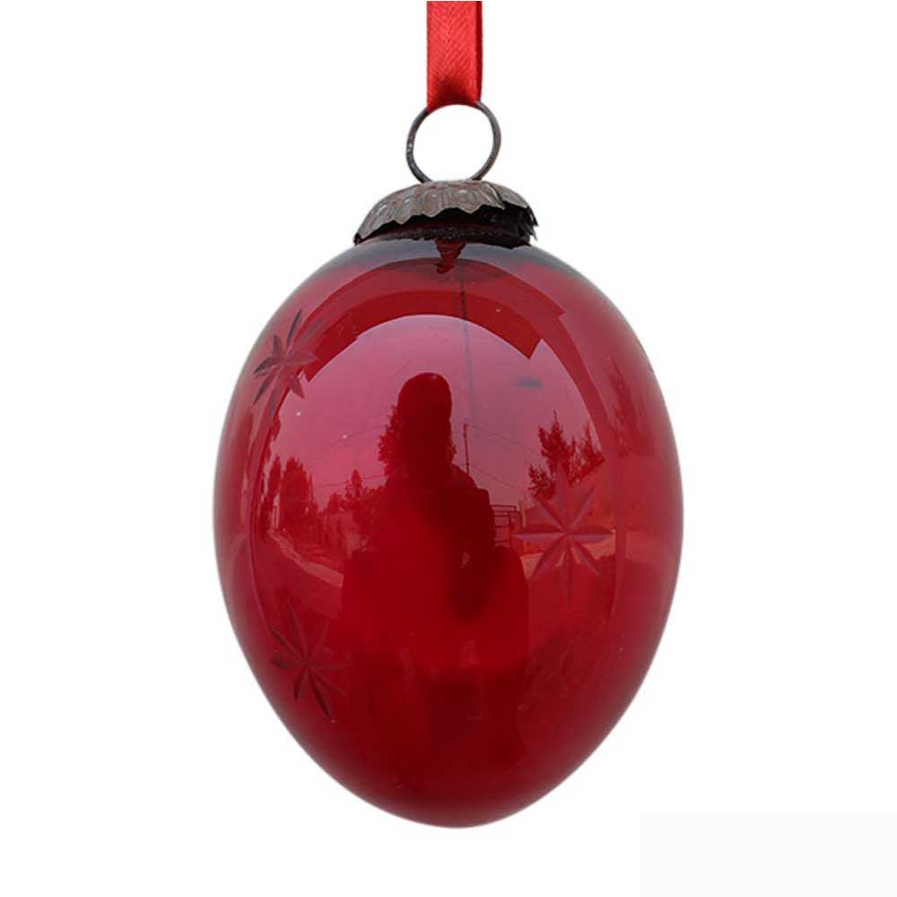 The rich red color paired with the intricate avocado star cut glass creates a stunning visual effect that will catch the eye of everyone who sees it. This ornament's timeless design adds a pop of color to your Christmas tree, garland, or wreath, making it a versatile choice for both traditional and contemporary holiday decor.