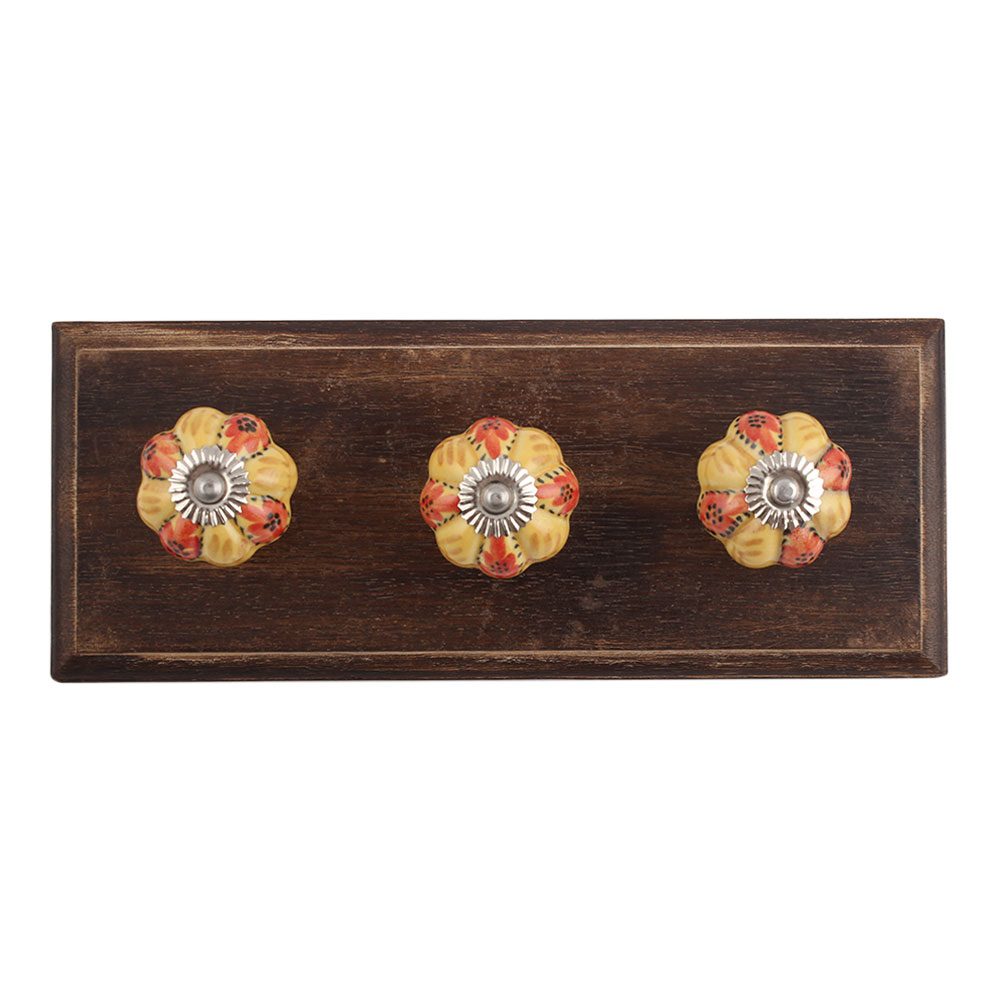 Red Berry Ceramic Wooden Hook. A Perfect Complement to the Soft Tone of the Wood are these White Traditional Hat & Coat Hook Made of Genuine Porcelain and Brass. It can be use to Hang Jewellery, Leashes, Towels, Scarves, Light Weight Sweaters, Caps Etc.
