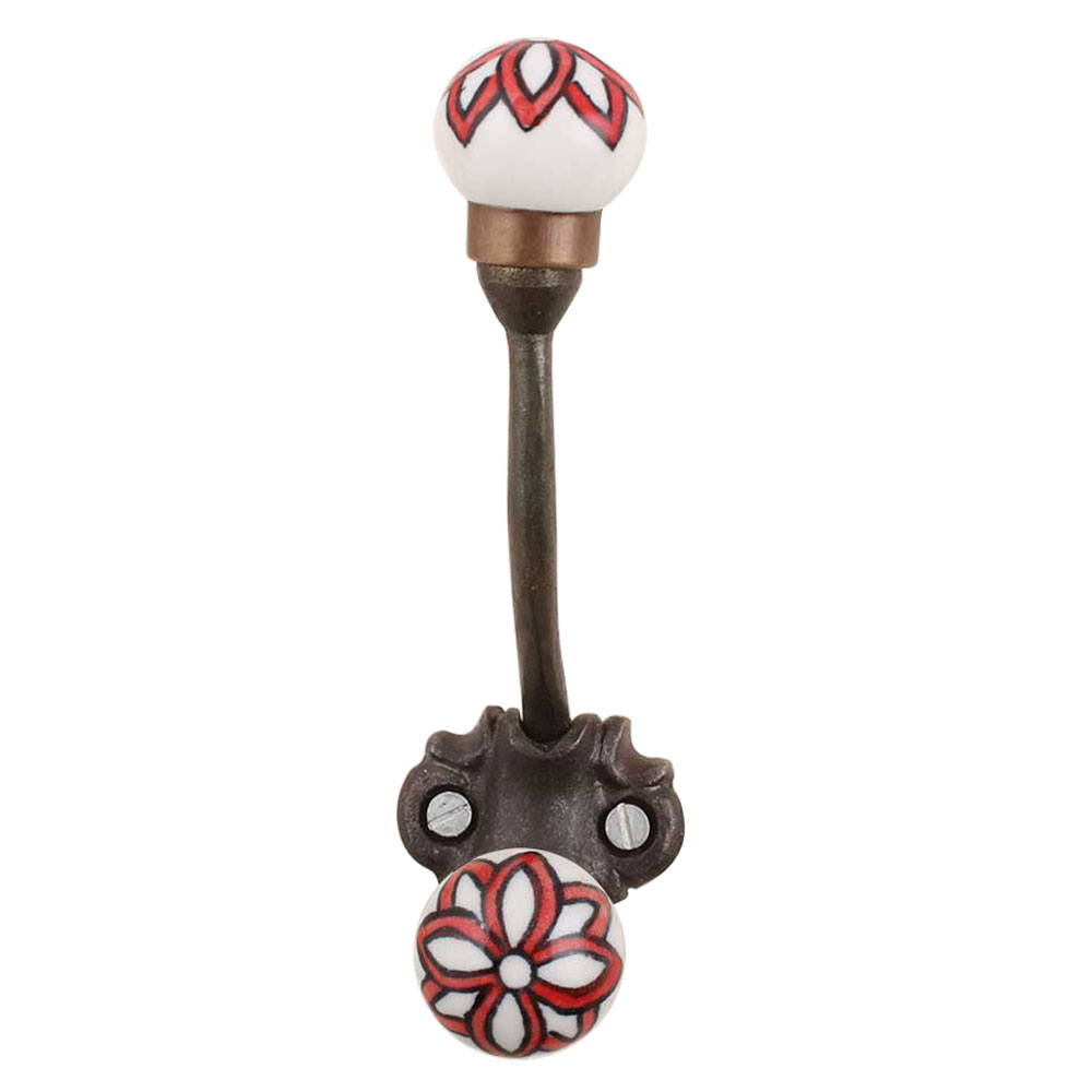 Red Black Floral Iron Hook-Ehg-73. When Put on Wall or Cabinet It Gives A Sturdy Look. This Hook is Strong Enough to Hold Your Cloths, Keys, Tea Cups, Coffee Mugs, Hand Towels Etc.
