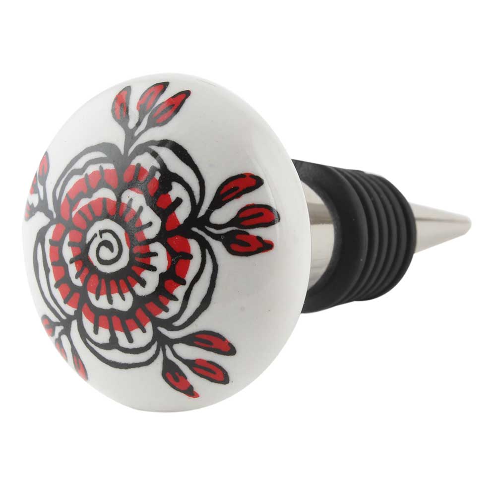 Red Black Rose Flat Ceramic Wine Bottle Stopper