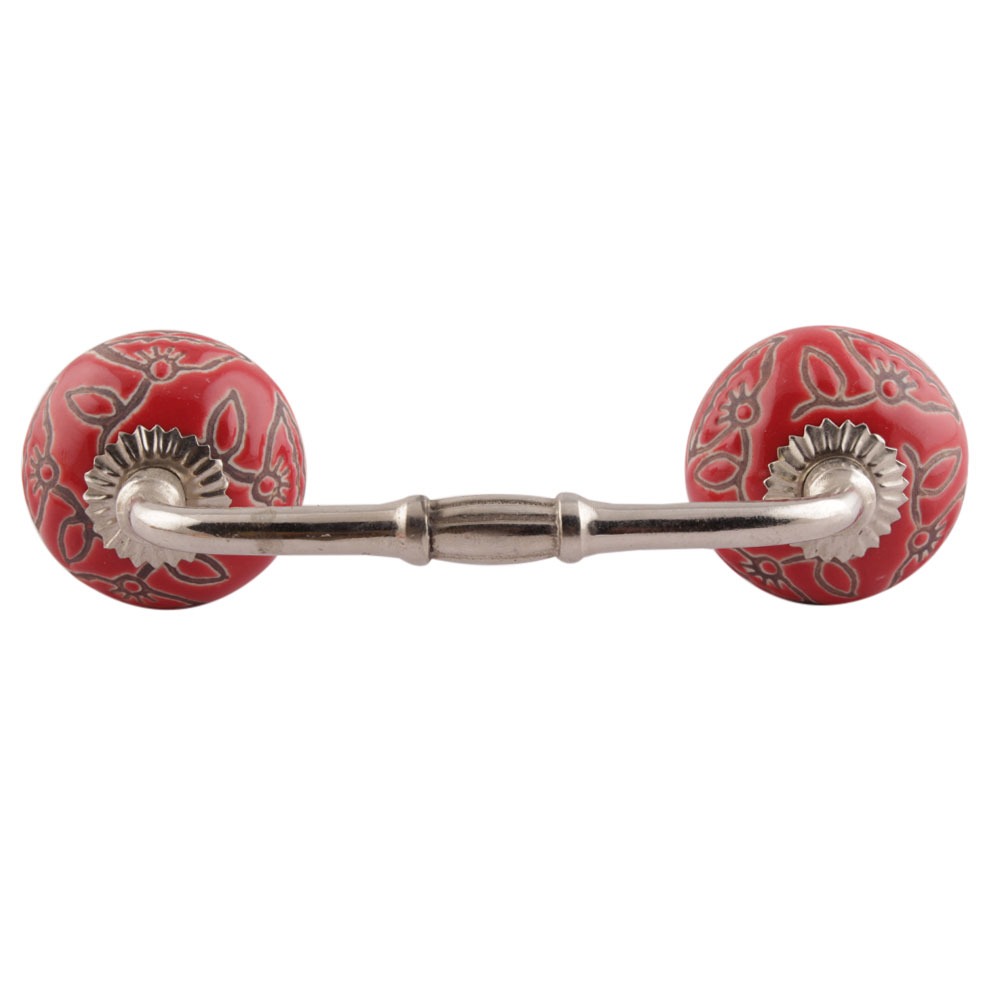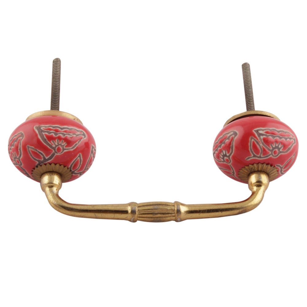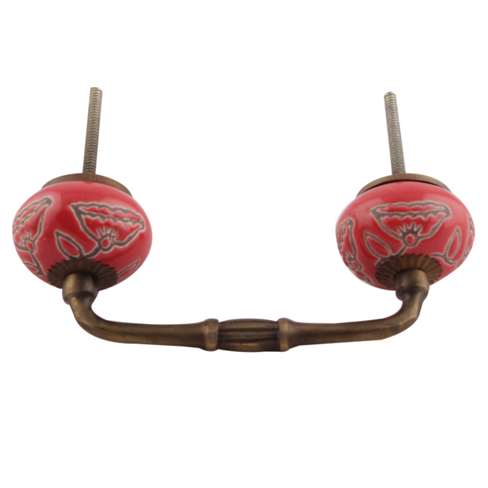 Red Calla Lily Brown Etched Ceramic Bridge Handle. Ideal for Drawer, Dresser, Cabinet, Wardrobe, Cupboard and Almirah etc.