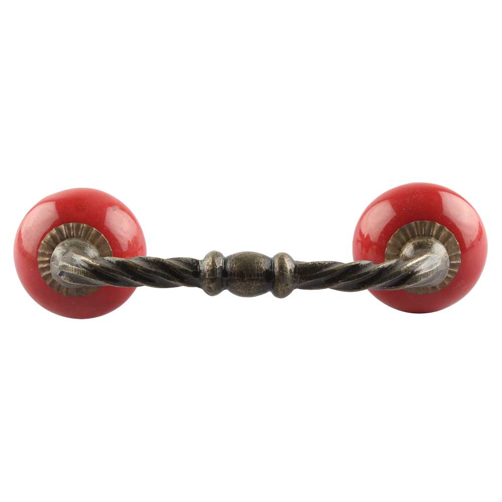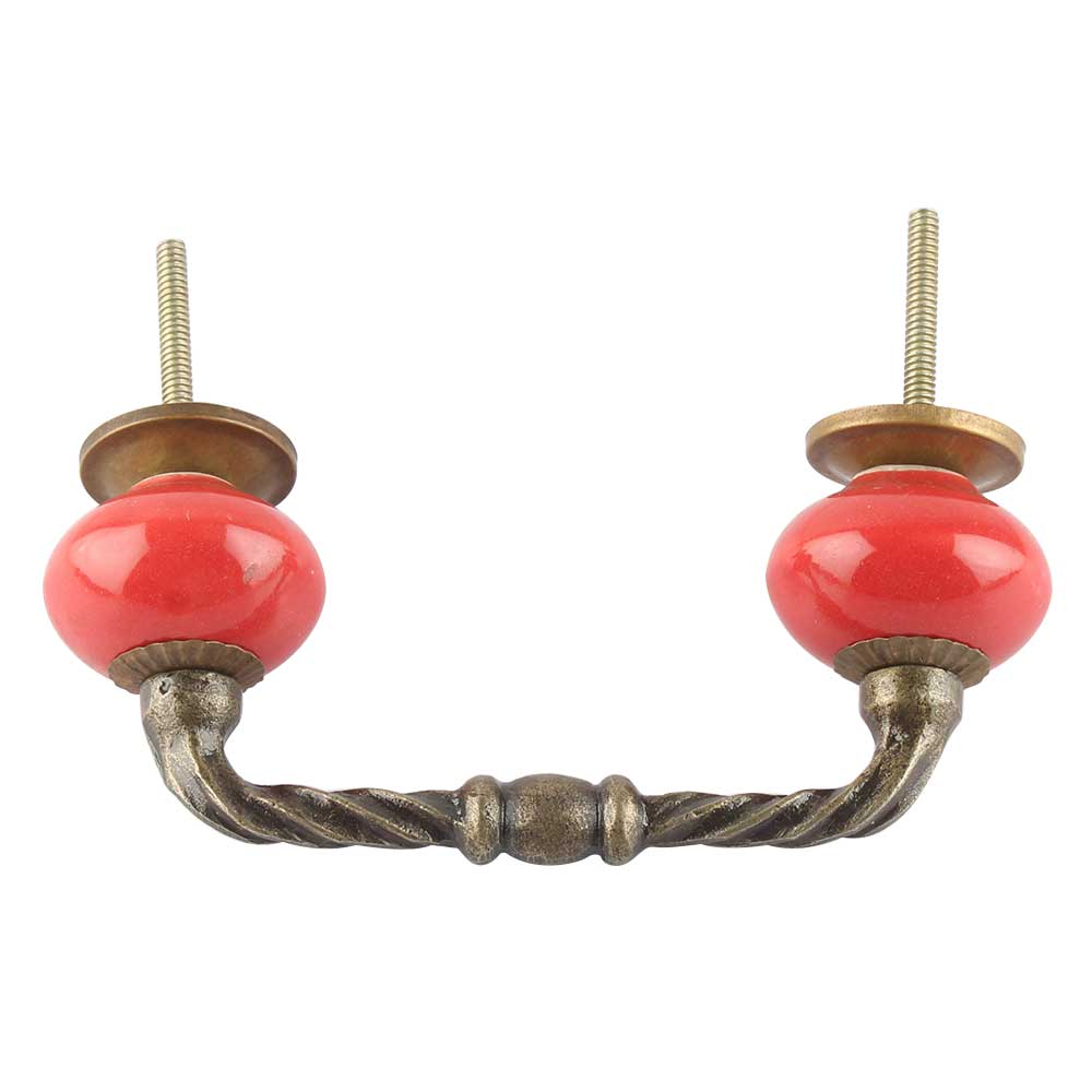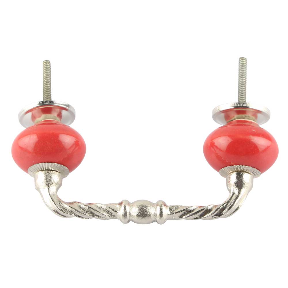 Red Ceramic Cut Bridge Handles. Ideal for Drawer, Dresser, Cabinet, Wardrobe, Cupboard and Almirah etc.