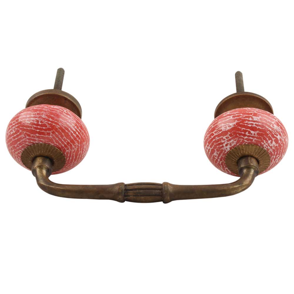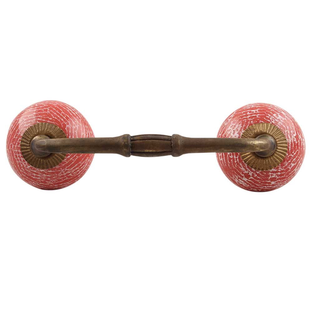 Red Ceramic Floral Bridge Handle. Ideal for Drawer, Dresser, Cabinet, Wardrobe, Cupboard and Almirah etc.