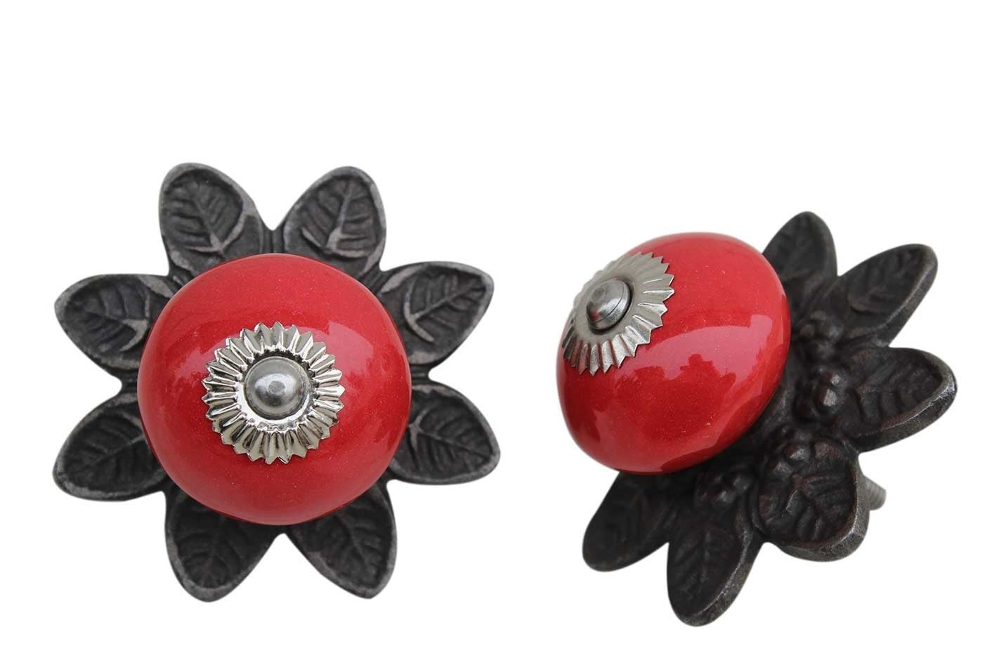 Bright red portia flower ceramic knob hardware is perfect for revamping your chest of drawers, bedroom furniture, cupboards, kitchen cabinets, dressers or wardrobes. These furniture handles and knobs are rust-free , thick and long-lasting hardware.