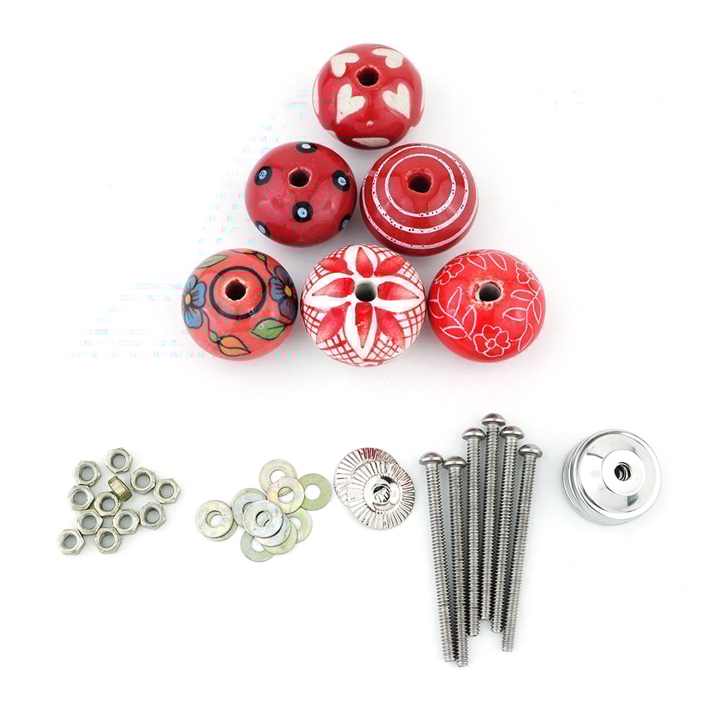 • Red Ceramic Round Living Room Cupboard Knobs