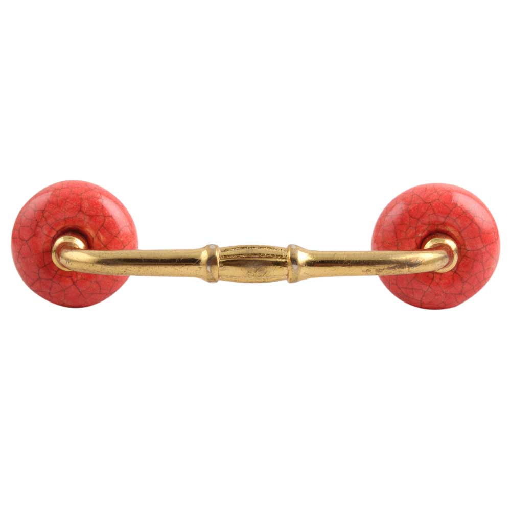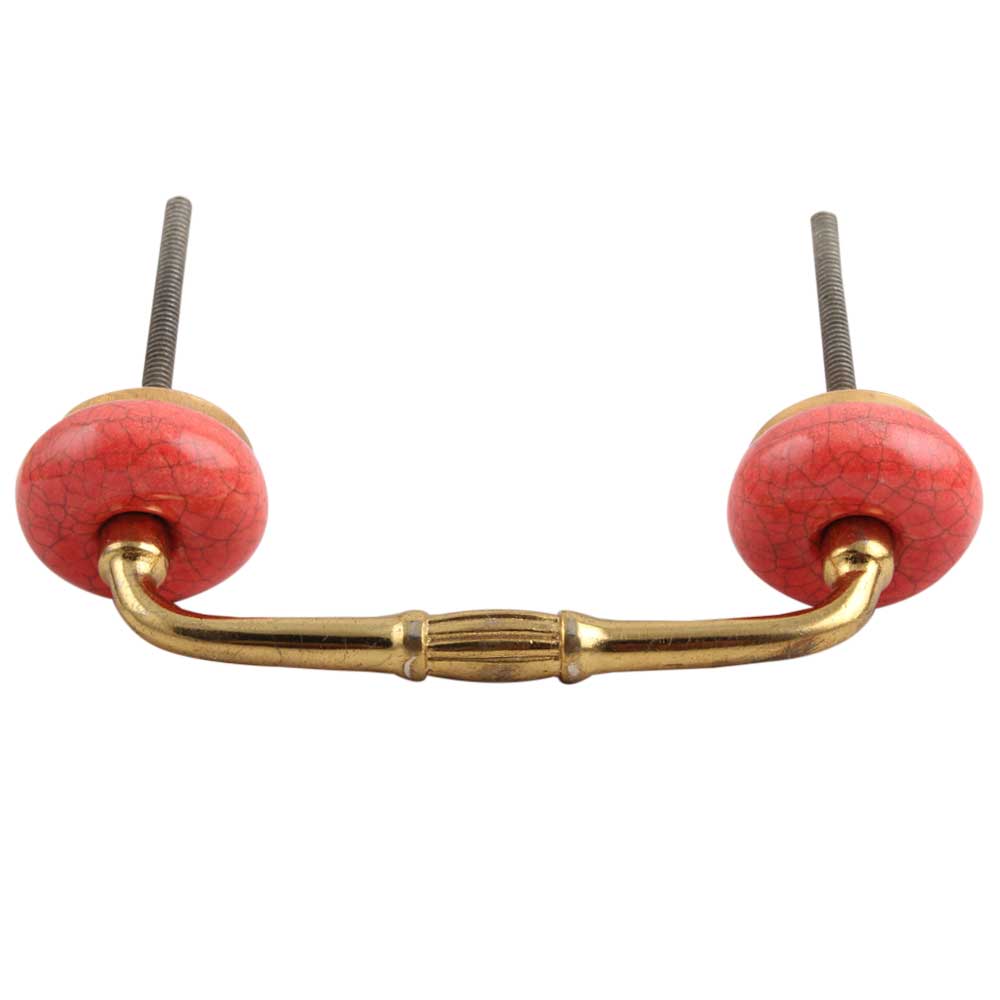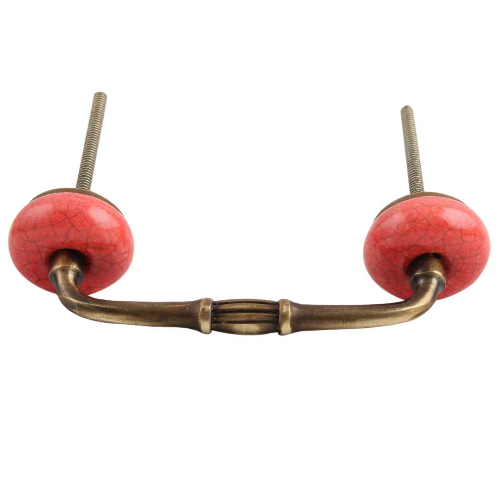 Red Crackle Ceramic Bridge Handle. Ideal for Drawer, Dresser, Cabinet, Wardrobe, Cupboard and Almirah etc.