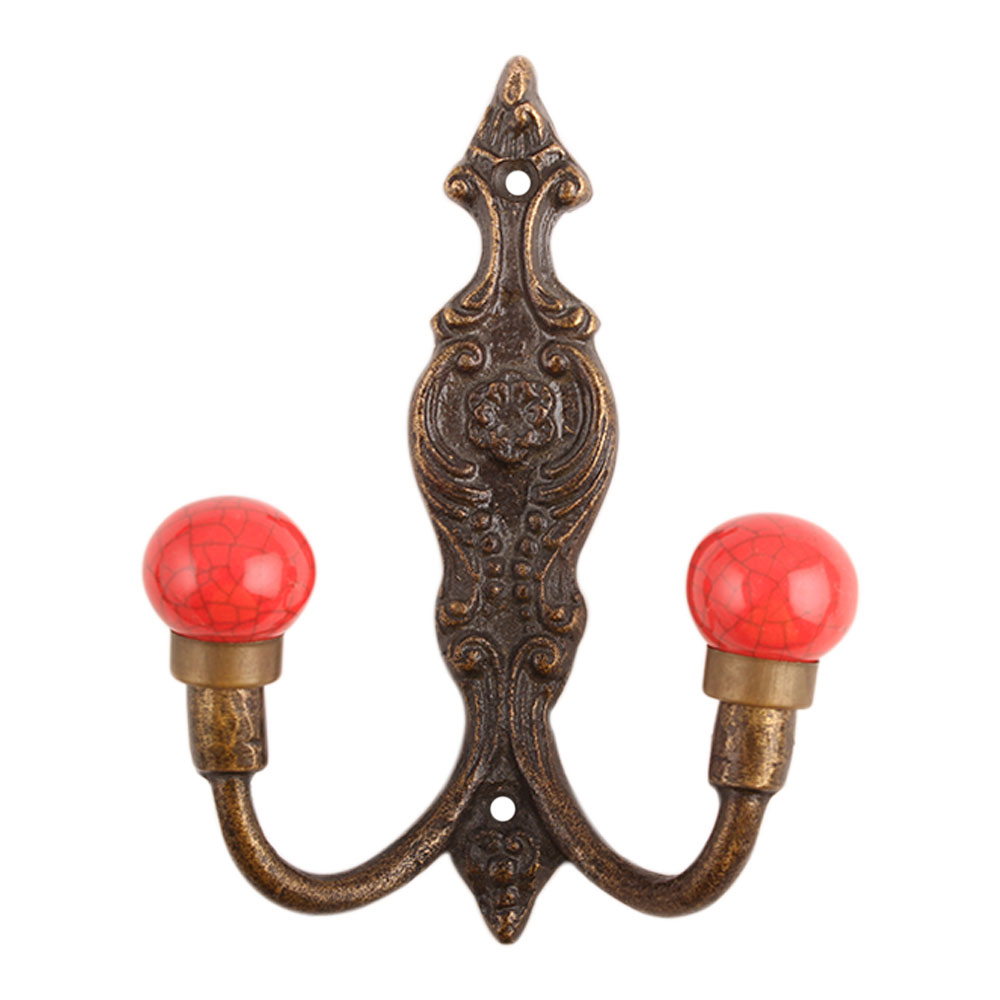 Red Crackle Ceramic Iron Hooks