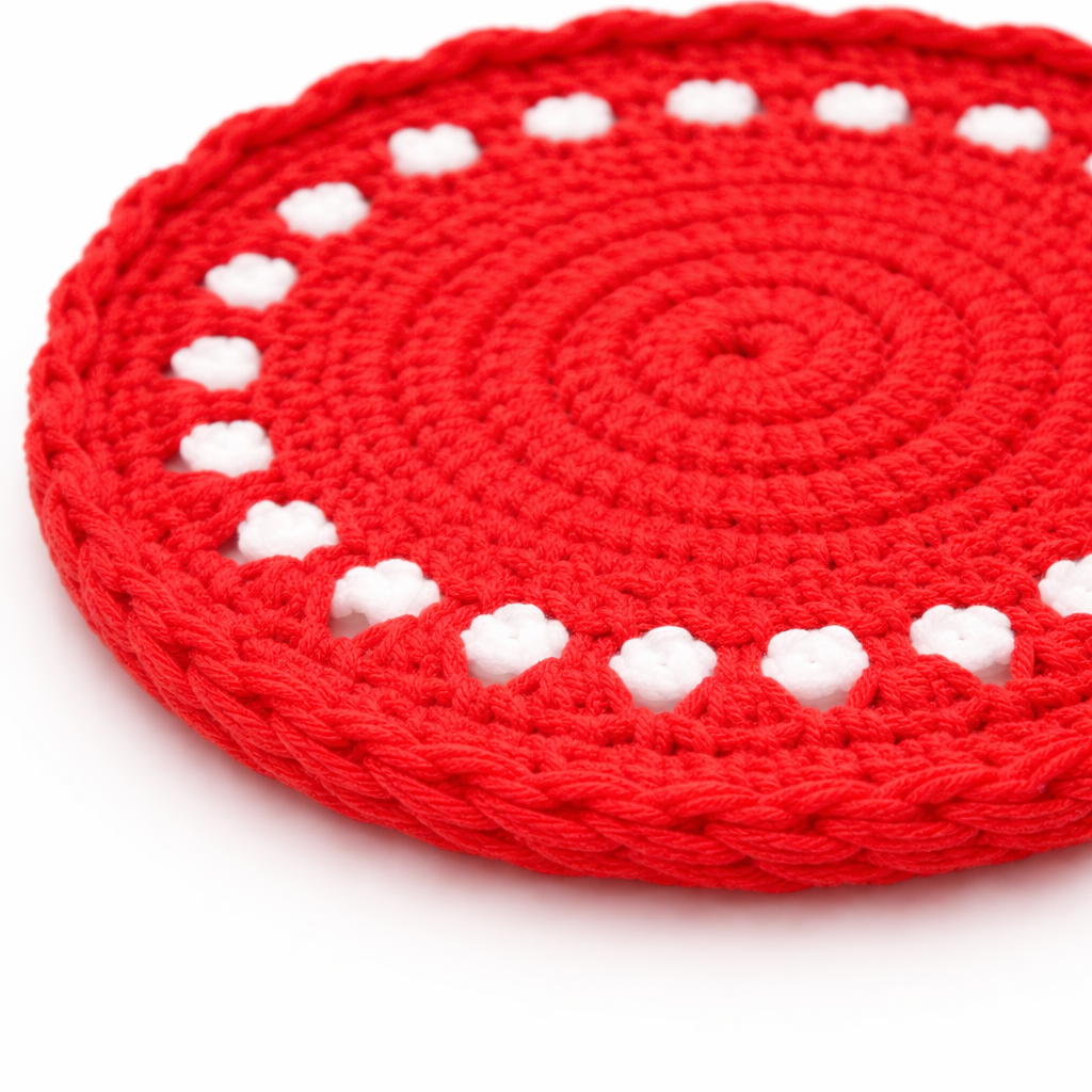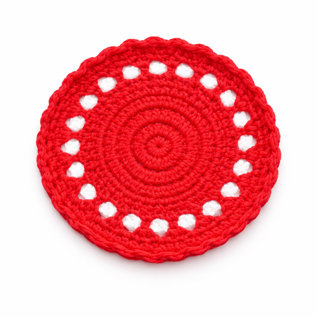 • Red Crochet Cotton Yarn Handcrafted Doily Coaster