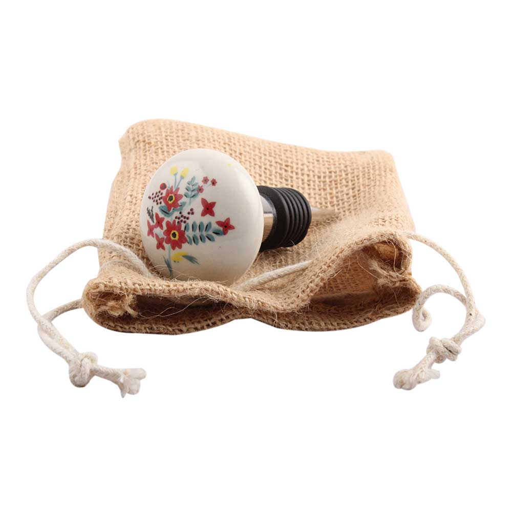 Red Dahlia Flower Ceramic Wine Stopper.zinc alloy wine bottle stopper with attractive Jute Bag Packaging.