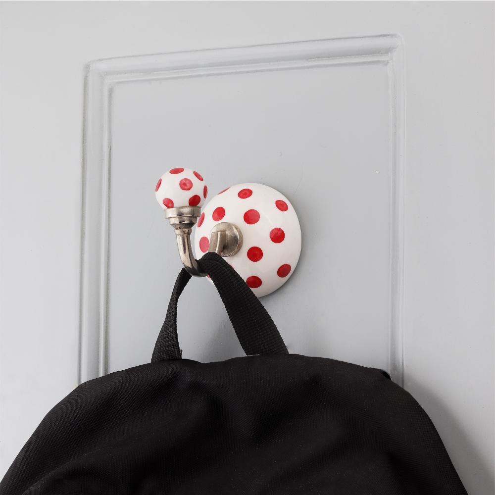 Red Dotted Wall Hooks. When Put on Wall or Cabinet It is An Art in Itself. This Hook is Strong Enough to Hold Your Cloths, Keys, Tea Cups, Coffee Mugs, Hand Towels Etc.