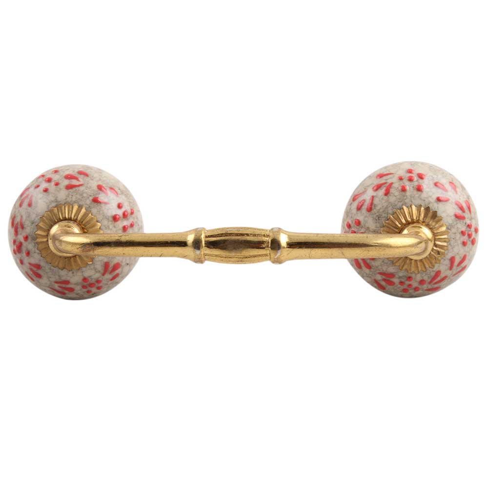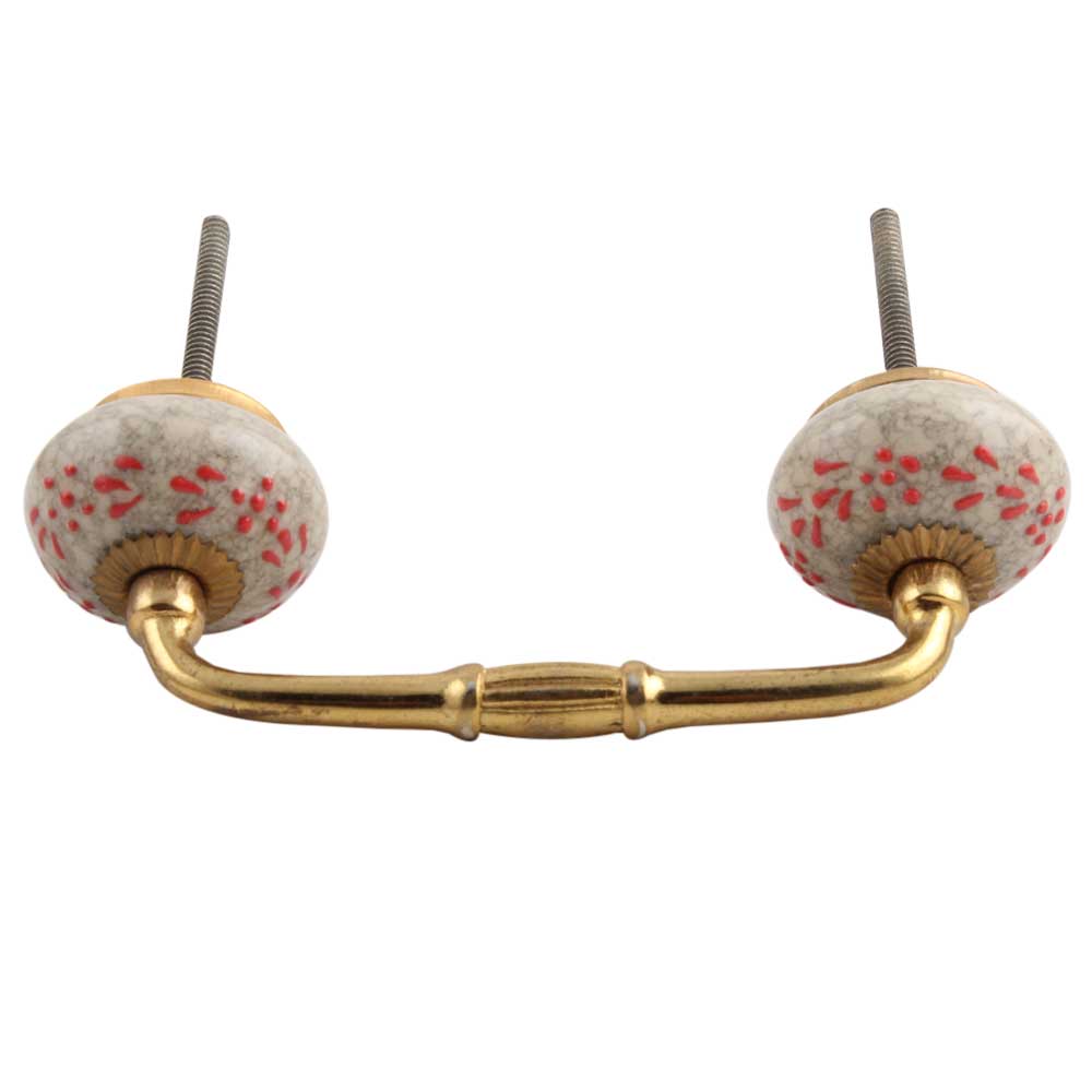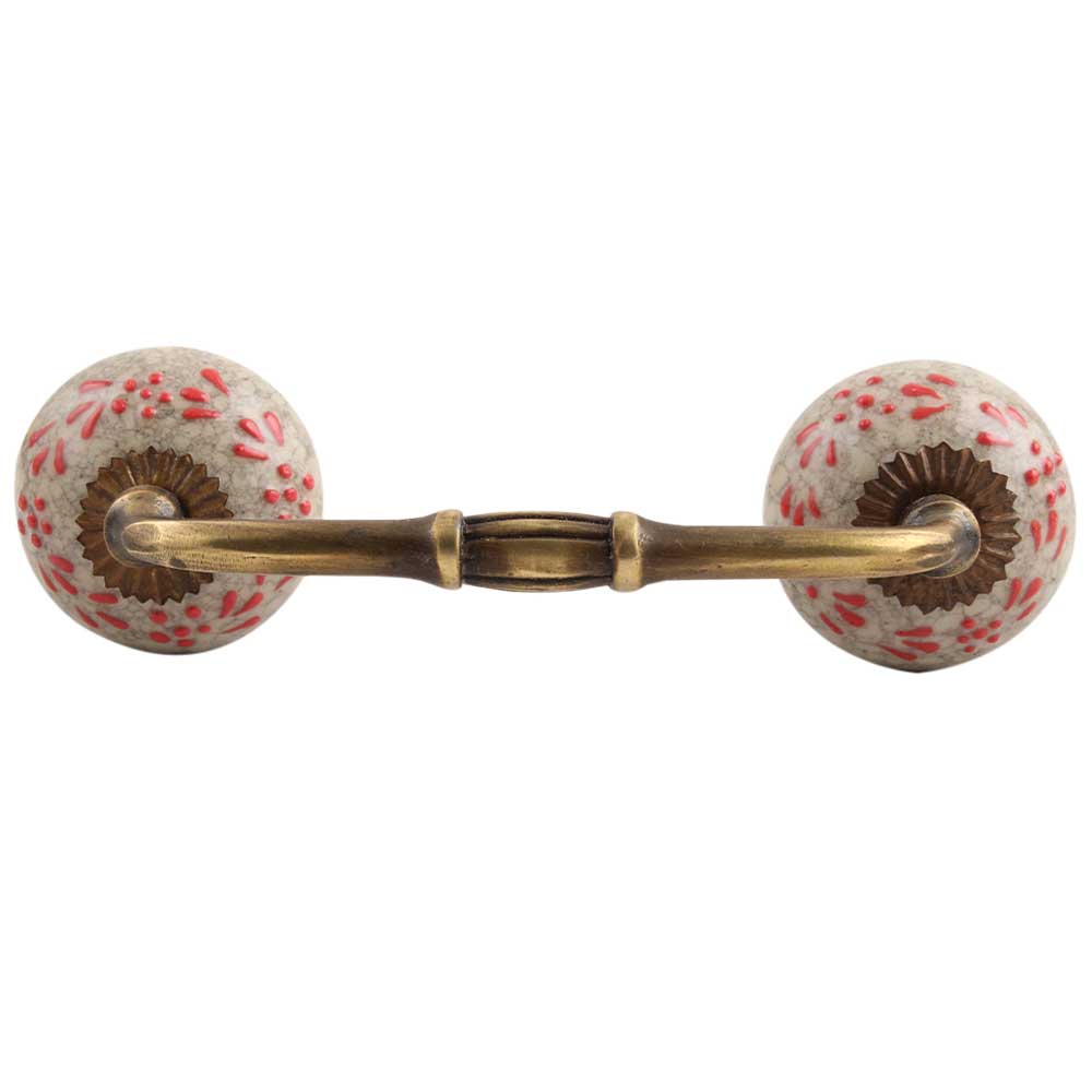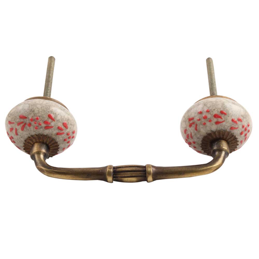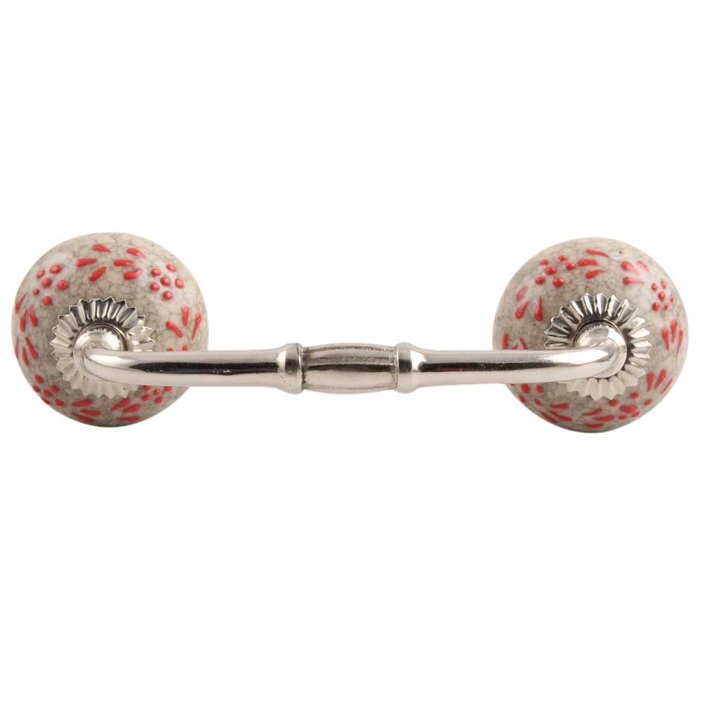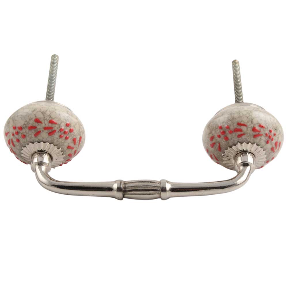 Indianshelf.com for bulk/wholesale orders.Indianshelf.us for personal purchases.The Red Embossed Crackle Ceramic Bridge Handle combines bold red hues with intricate design to create a statement piece for any cabinet or drawer. Its crackle glaze and detailed embossing bring a touch of antique elegance while still offering a modern twist on traditional hardware. Perfect for those looking to elevate their furniture with a unique, stylish handle.