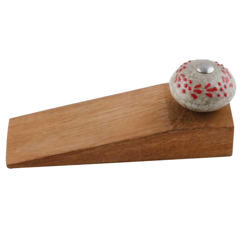 Handmade Ceramic and Wooden Door Stopper.Wooden Door Stopper with a Ceramic Knob to Carry it Easily. This Wooden Door Stopper has Glue Dots under it to Ensure that it does not Slip. It is Handmade by the Craftsmen of India and this Innovative Door Stopper won't Disappoint You.