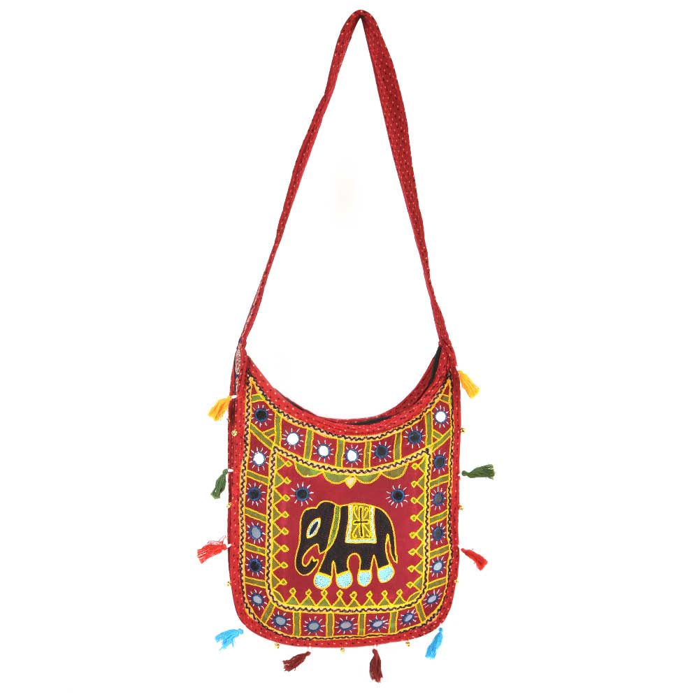 Red Embroidered Elephant Sling Bag