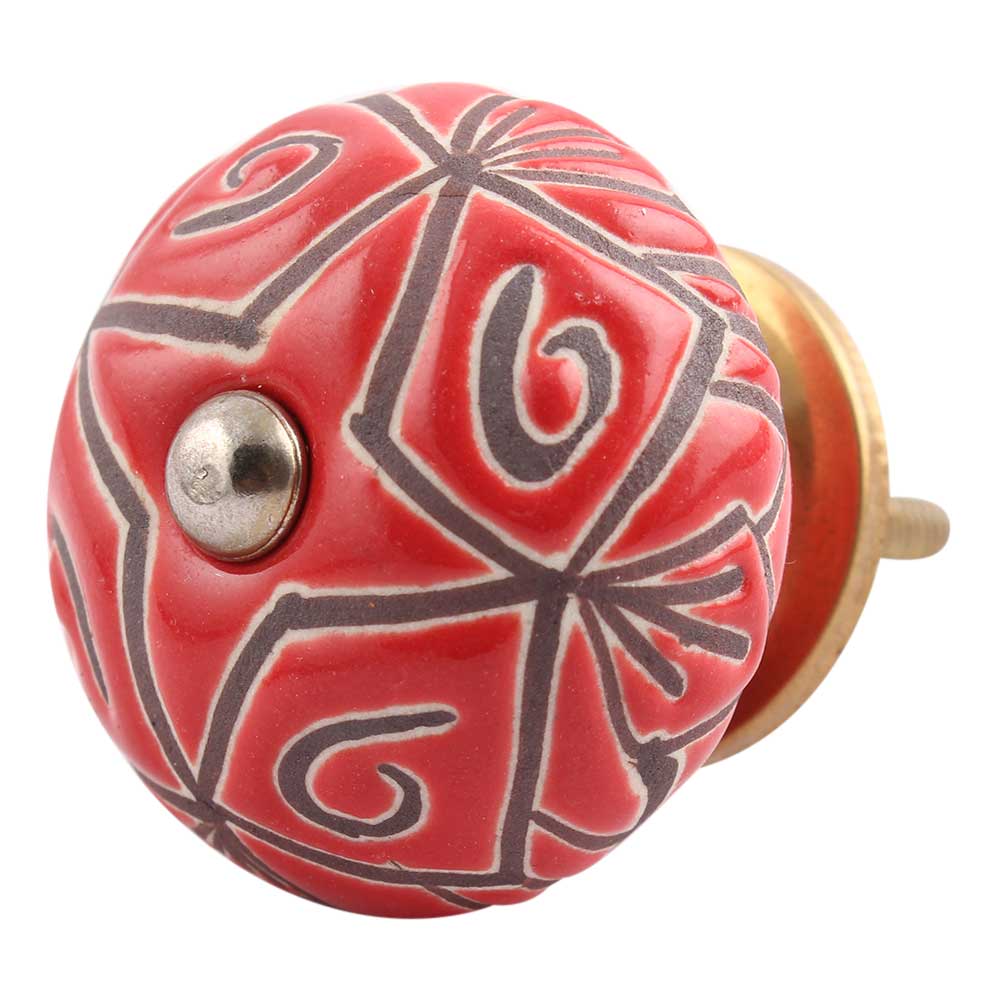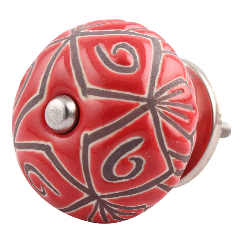 Red Etched Ceramic Floral Cabinet Knob Online