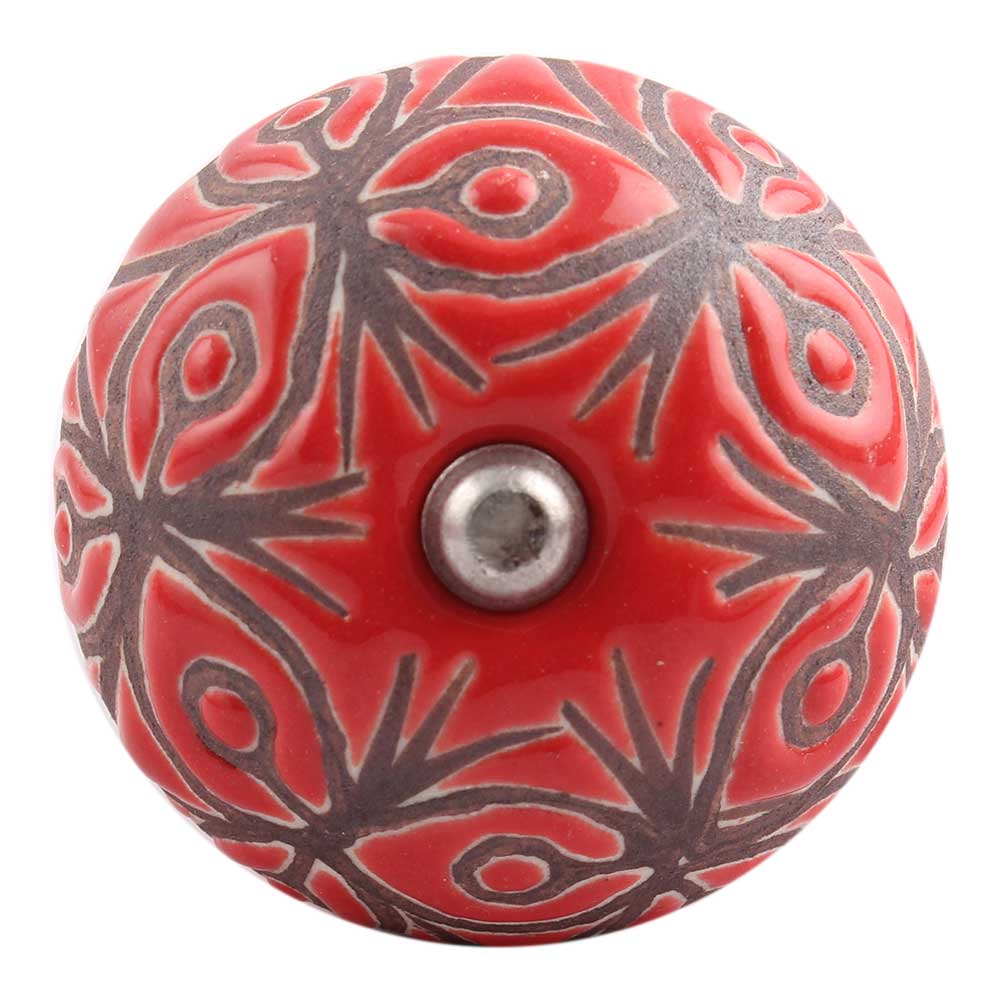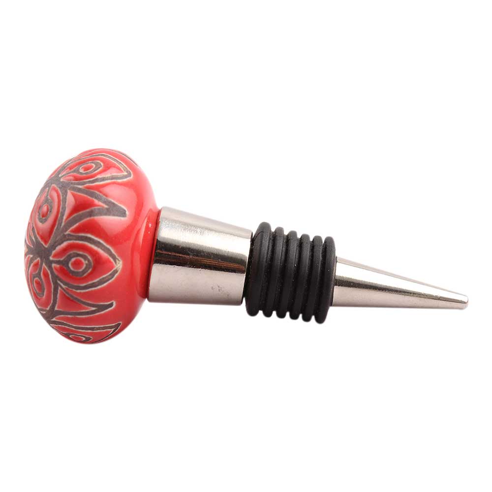 Red Etched Ceramic Floral Wine Stopper