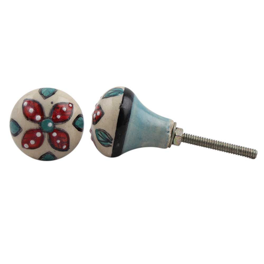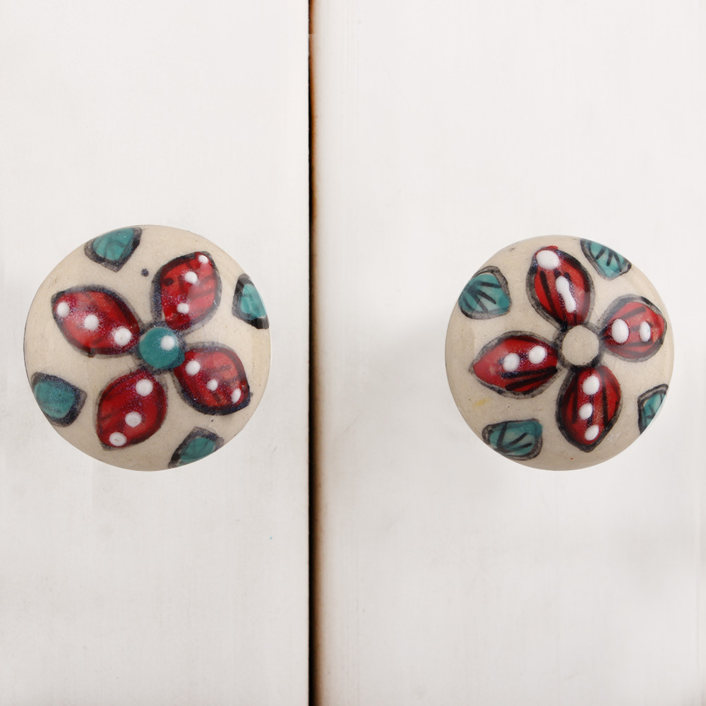 Red Floral Bulb Ceramic Furniture Knob