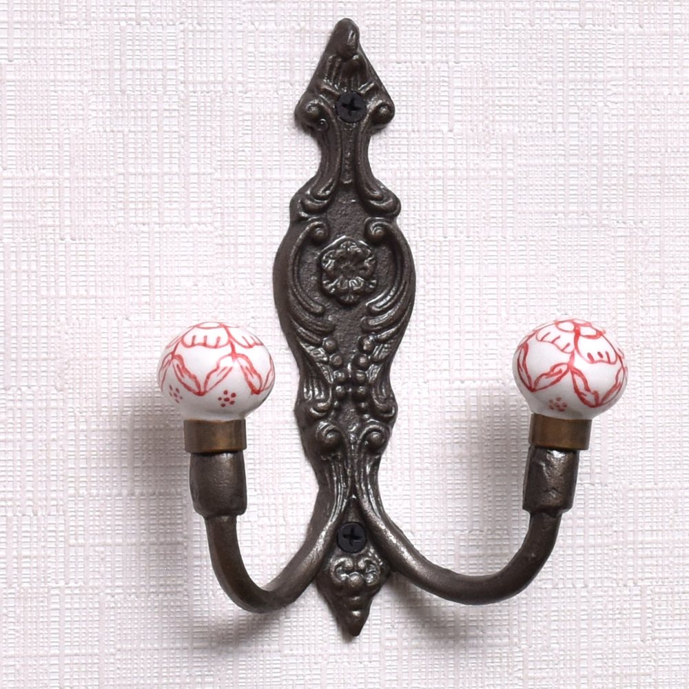 Red Floral Ceramic Iron Hooks