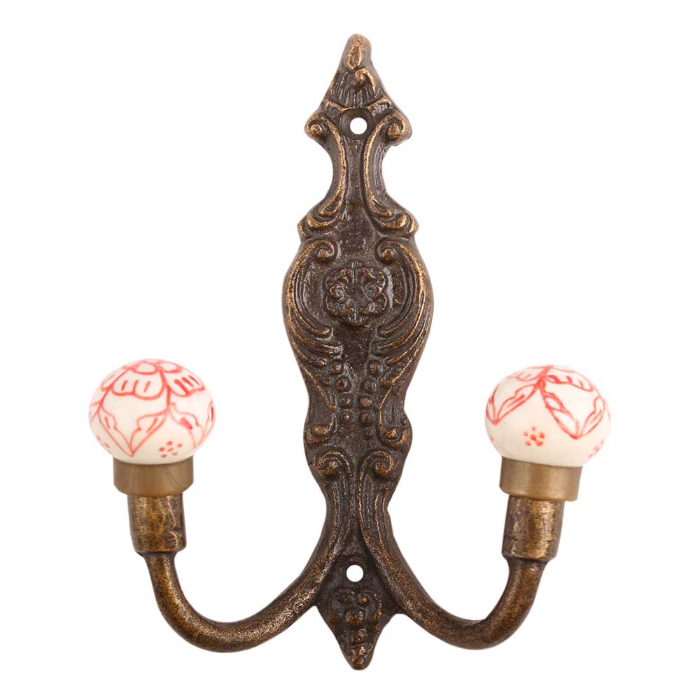 Red Floral Ceramic Iron Hook. When Put on Wall or Cabinet It Gives A Sturdy Look. This Hook is Strong Enough to Hold Your Cloths, Keys, Tea Cups, Coffee Mugs, Hand Towels Etc