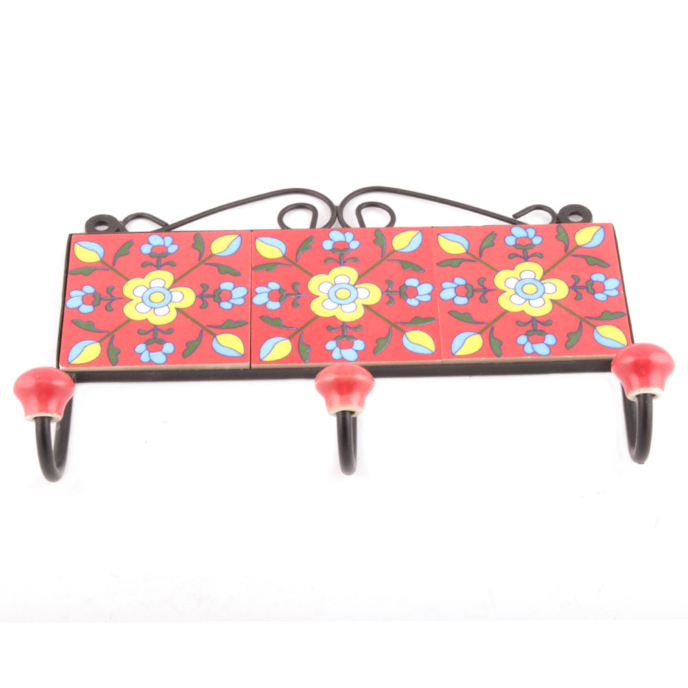 Red Floral Tiles Hooks Online. When Put on Wall or Cabinet it is an Art in itself. The Metal Part of this Hook is Black Powder Coated.