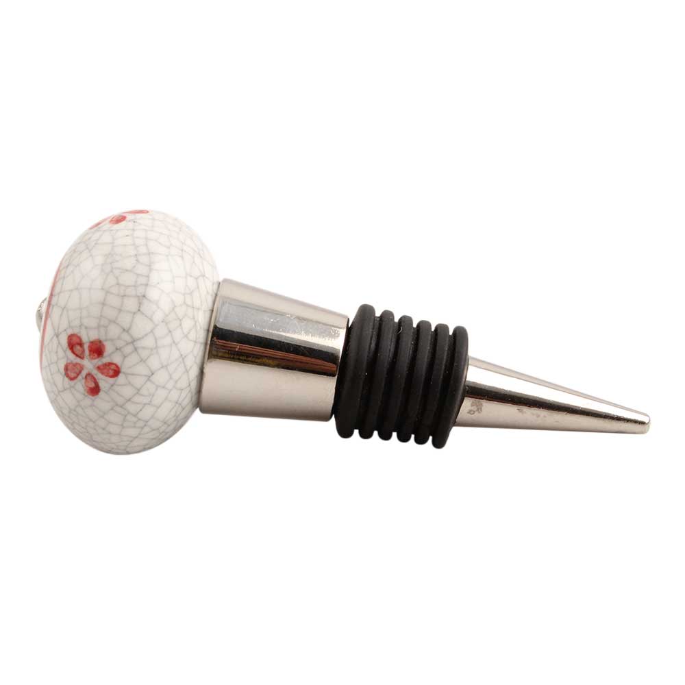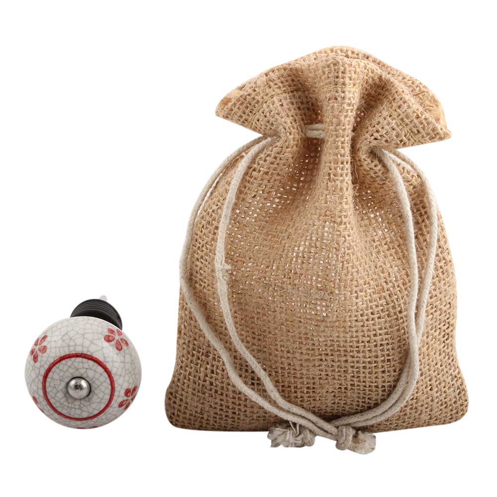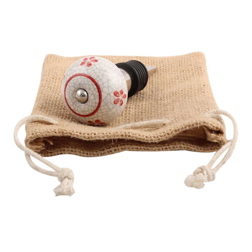 Red Floral Crackle Ceramic Wine Stopper. Zinc Alloy Wine Bottle Stopper with Attractive Jute Bag Packaging.