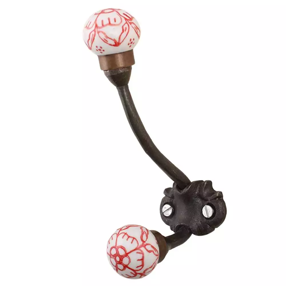 Red Floral Iron Hook-Ehg-72. When Put on Wall or Cabinet It Gives A Sturdy Look. This Hook is Strong Enough to Hold Your Cloths, Keys, Tea Cups, Coffee Mugs, Hand Towels Etc.