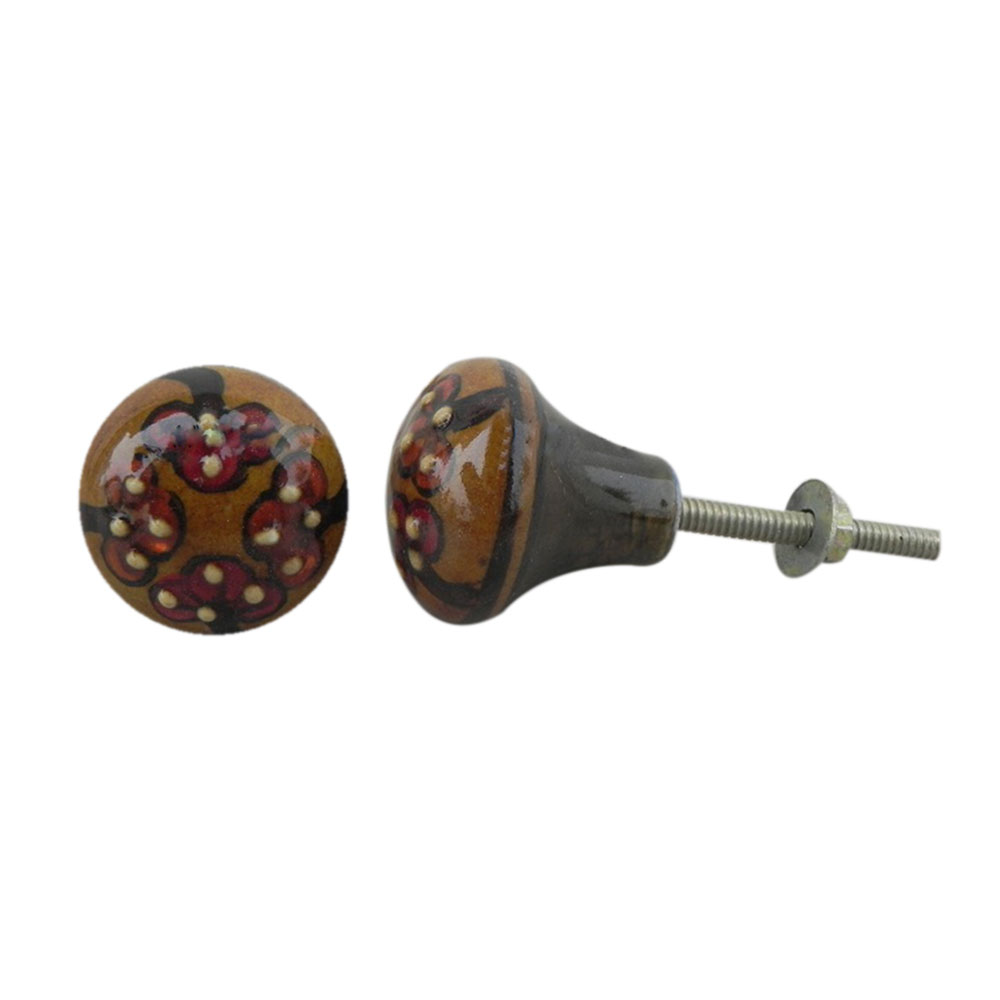 Red Floral Mustard Ceramic Bulb Knob