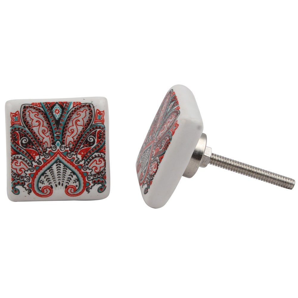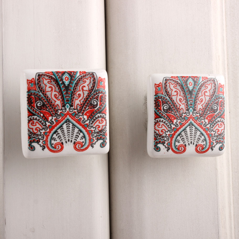 Red Floral Printing Knob