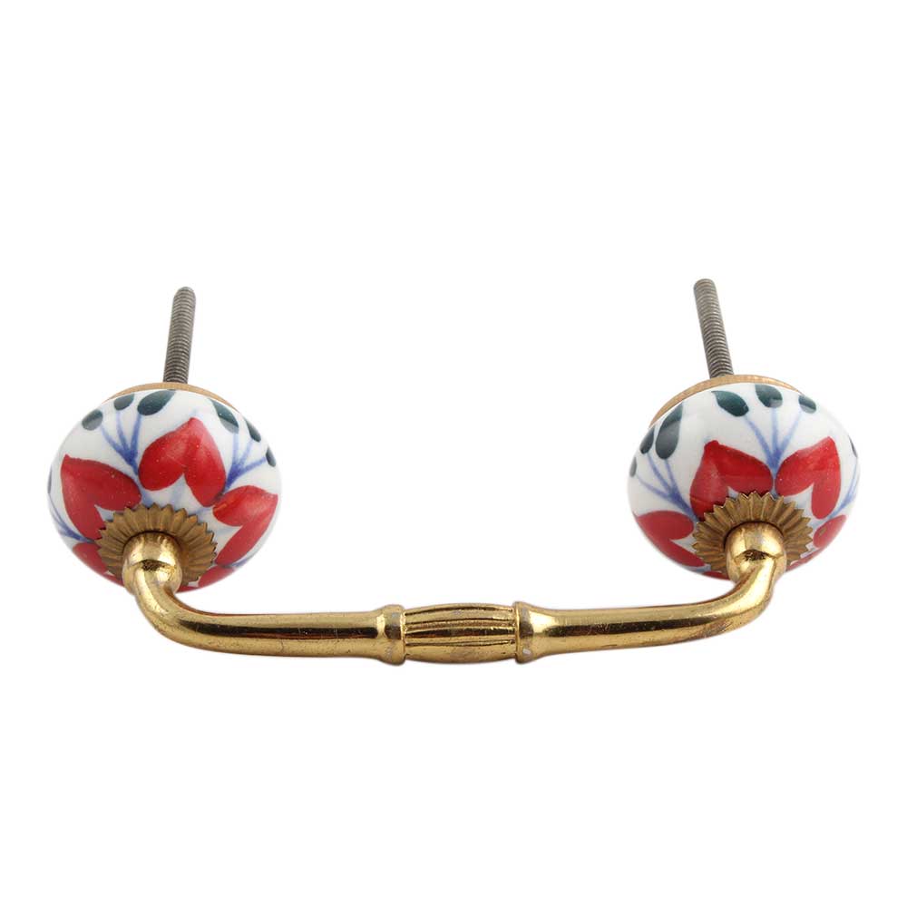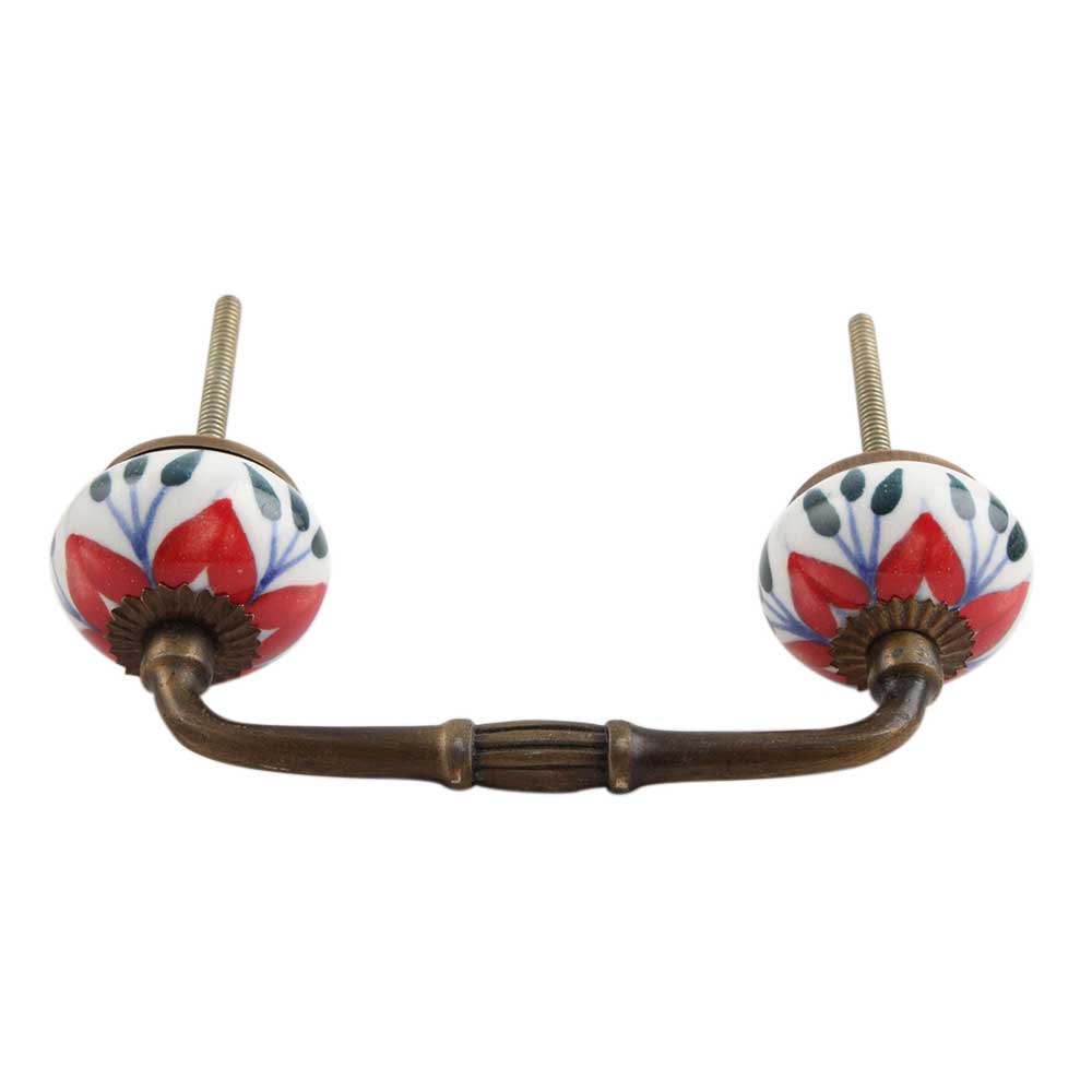 Red Flower Ceramic Bridge Handle. Ideal for Drawer, Dresser, Cabinet, Wardrobe, Cupboard and Almirah.