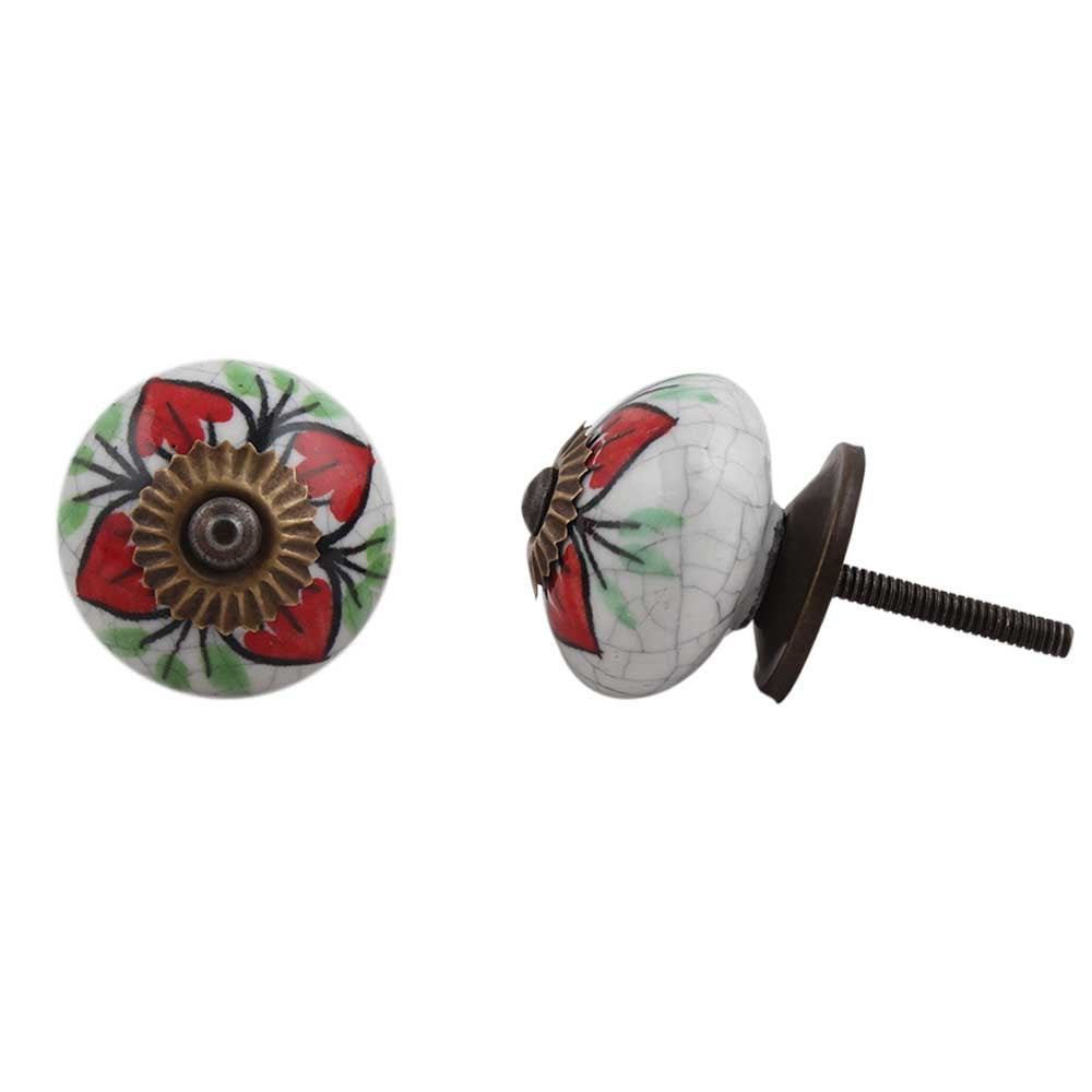 Red Flower Crackle Ceramic Dresser Knob Online