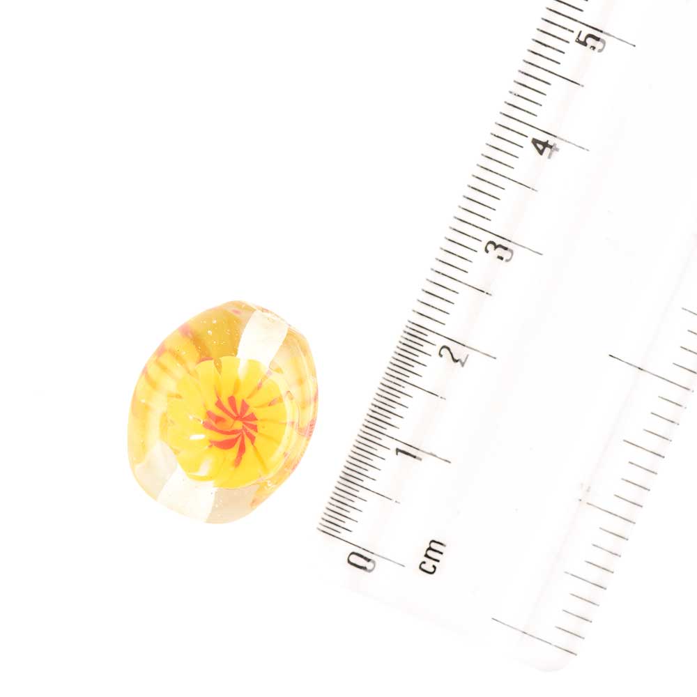 Red Flower Inside Yellow Flower Clear Loose Oval Shape Jewellery Beads (12 in Pack)