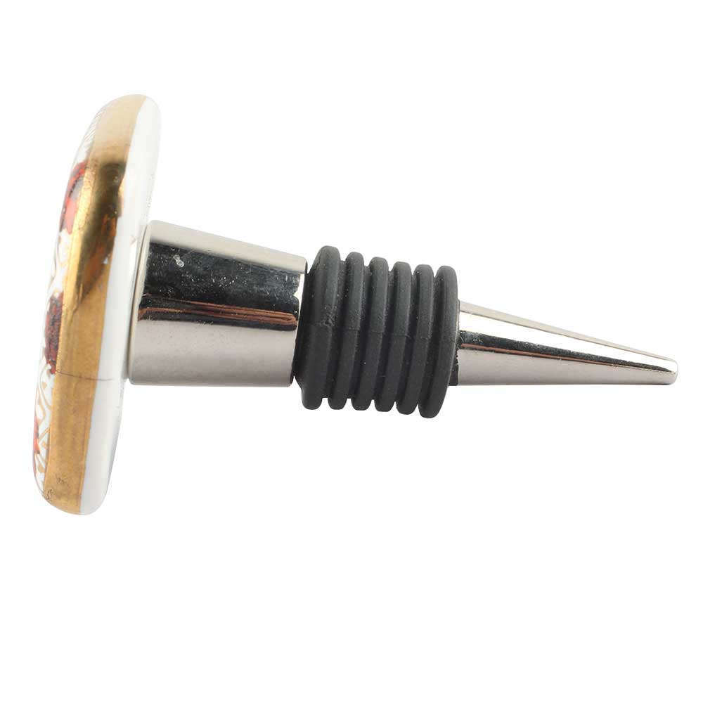 Red Flower Square Ceramic Wine Stopper. Zinc Alloy Wine Bottle Stopper with Attractive Jute Bag Packaging.