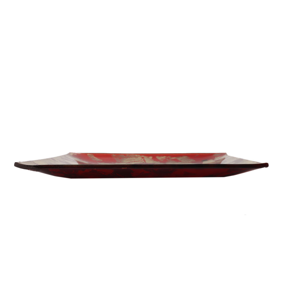 Provide your guests with snacks and other drinks in the exquisitely crafted glass serving trays and make them smile. The tray is made of high-quality glass making it perfect for both special events and everyday use. Your serving experience will be improved by this handmade, painted tray with a red and gold texture. This beautiful tray doesn't need any additional support so it can be placed on any flat surface or hung on the wall.