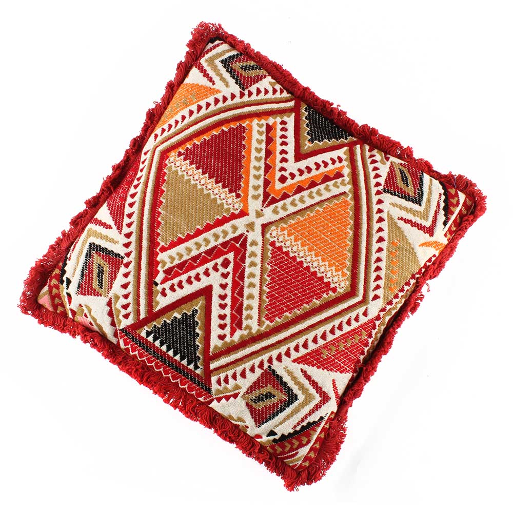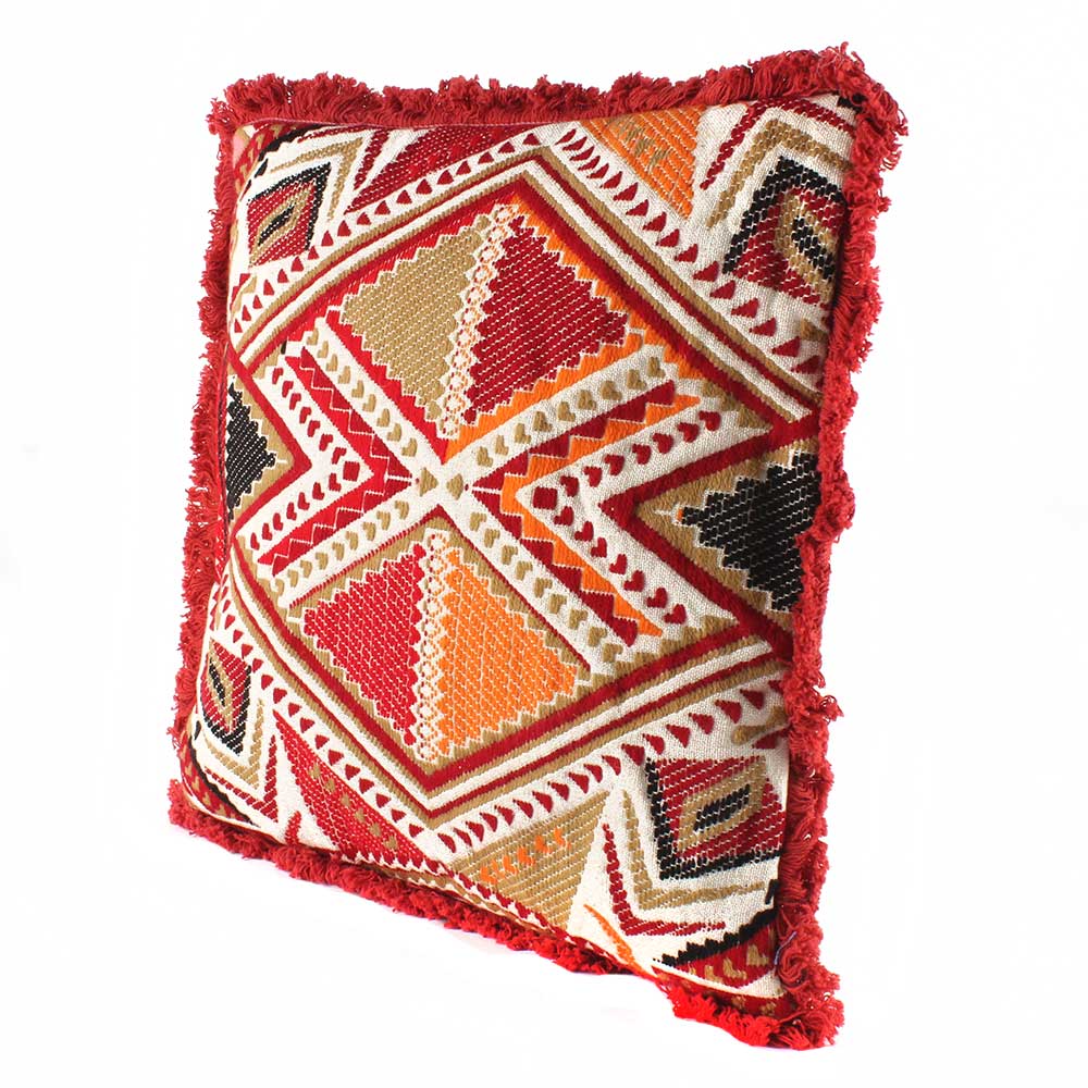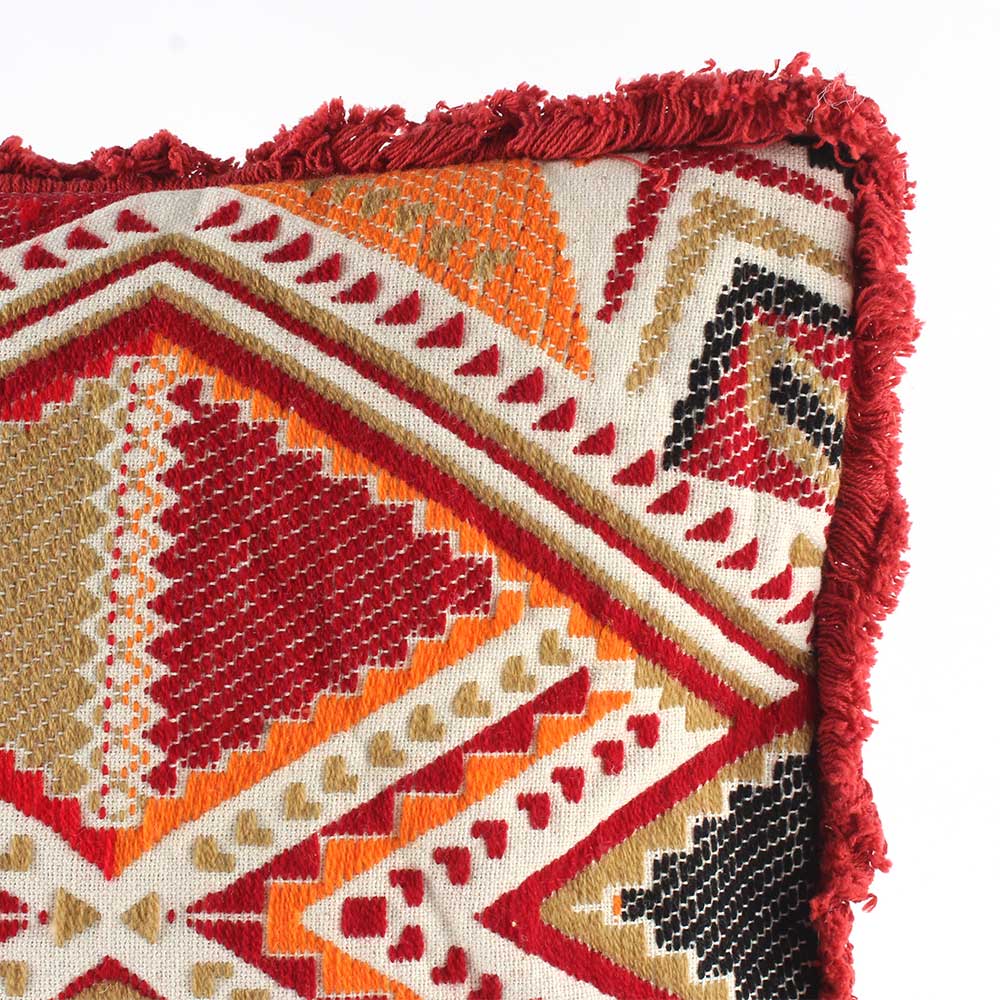 • Red Hand woven Embroidery Cotton Pillow Cover