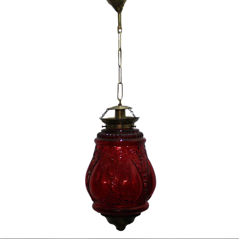 Red Hanging glass light fixture Big Lamp