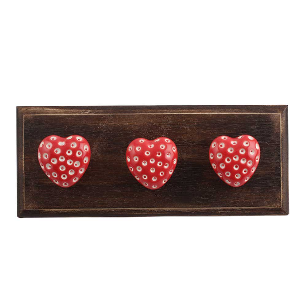 Red Heart Etched Ceramic Wooden Hooks