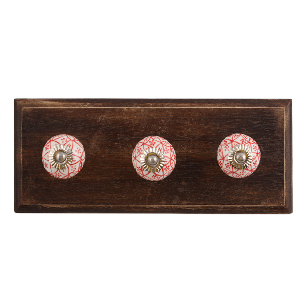 Red Leaf Ceramic Wooden Hook. A Perfect Complement to the Soft Tone of the Wood are these White Traditional Hat & Coat Hook Made of Genuine Porcelain and Brass. It can be use to Hang Jewellery, Leashes, Towels, Scarves, Light Weight Sweaters, Caps Etc.