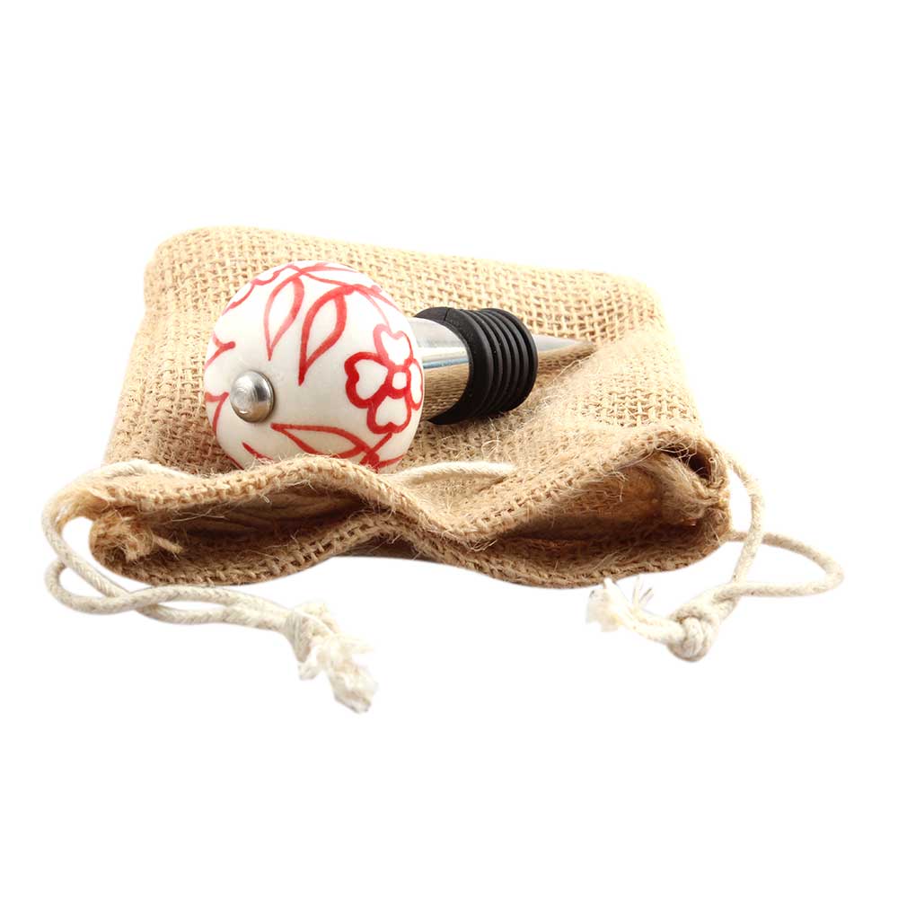 Red Leaf Floral Ceramic Wine Stopper.zinc alloy wine bottle stopper.