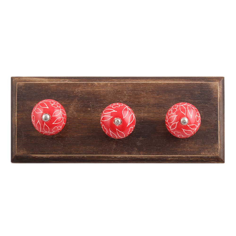 Red Leaf Floral Ceramic Wooden Hook. A Perfect Complement to the Soft Tone of the Wood are these White Traditional Hat & Coat Hook Made of Genuine Porcelain and Brass. It can be use to Hang Jewellery, Leashes, Towels, Scarves, Light Weight Sweaters, Caps Etc.