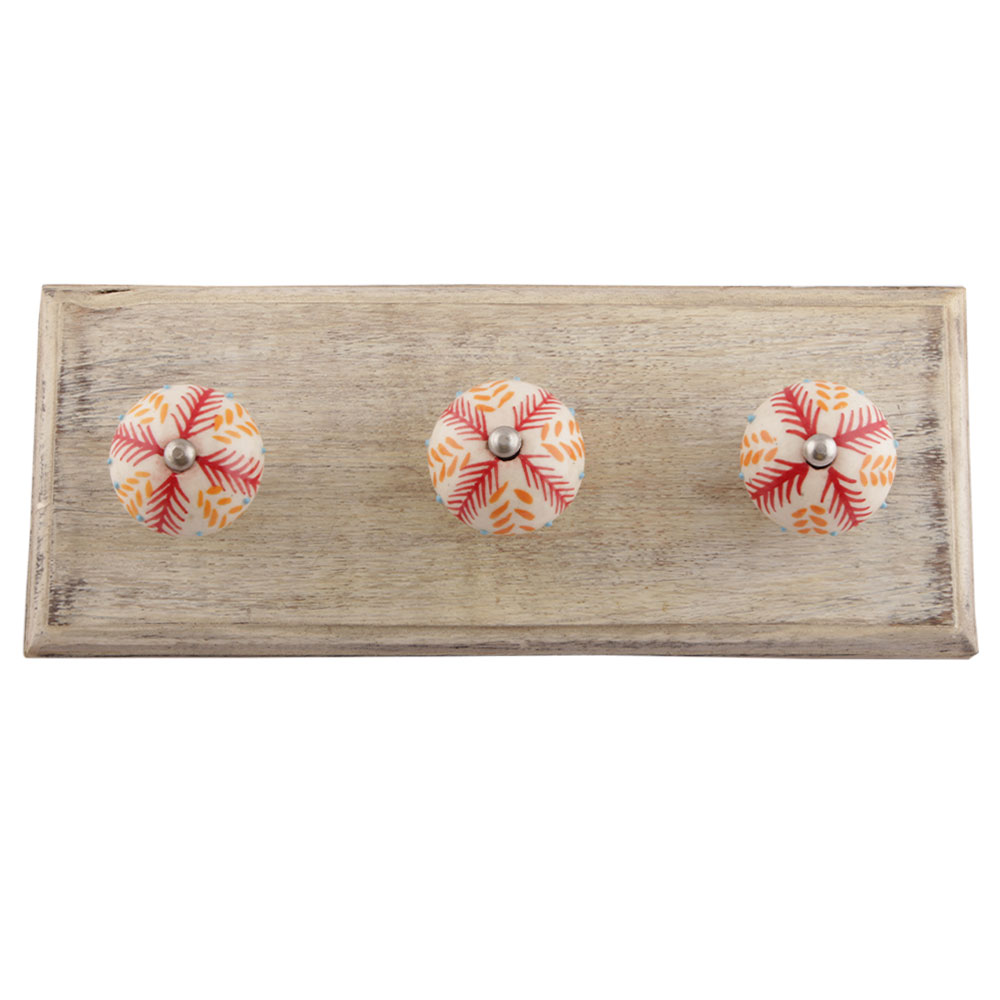 Red Leaf Floral Ceramic Wooden Hooks. A Perfect Complement to the Soft Tone of the Wood are these White Traditional Hat and Coat Hook Made of Genuine Porcelain and Brass. It can be used to Hang Jewelry, Leashes, Towels, Scarves, Light Weight Sweaters, Caps etc.