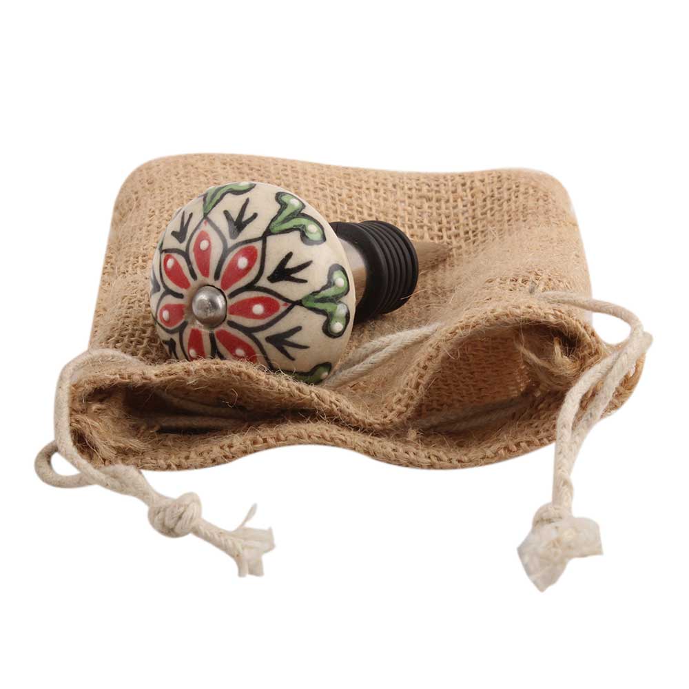 Red Leaf Flower Ceramic Wine Stopper.zinc alloy wine bottle stopper with attractive Jute Bag Packaging.