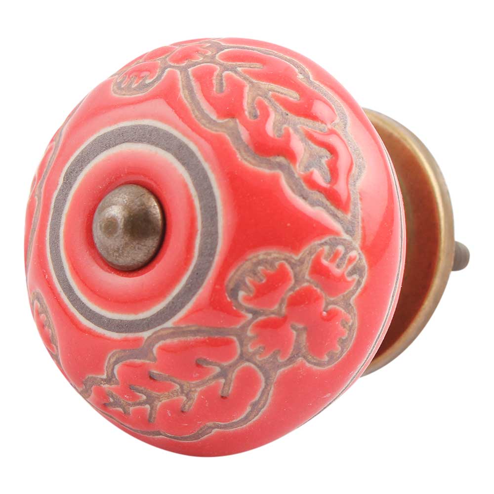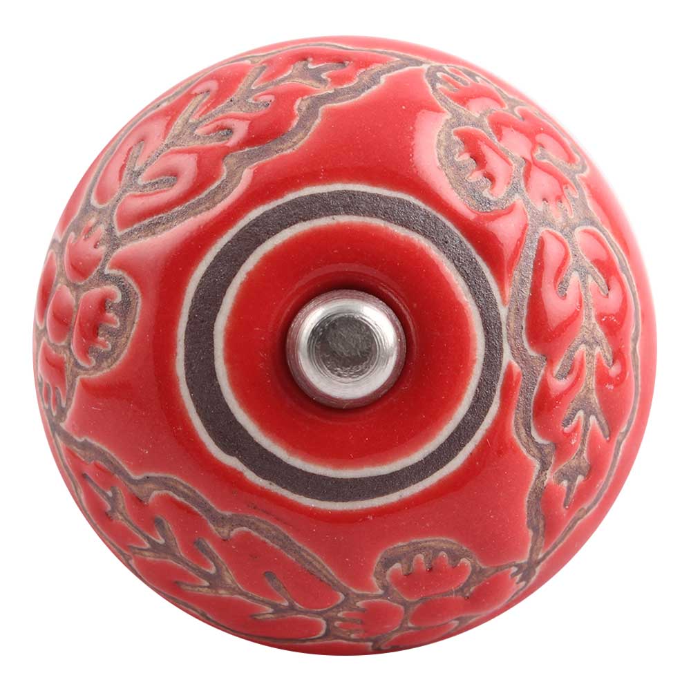 Red Leaf Flower Etched Ceramic Drawer Knob