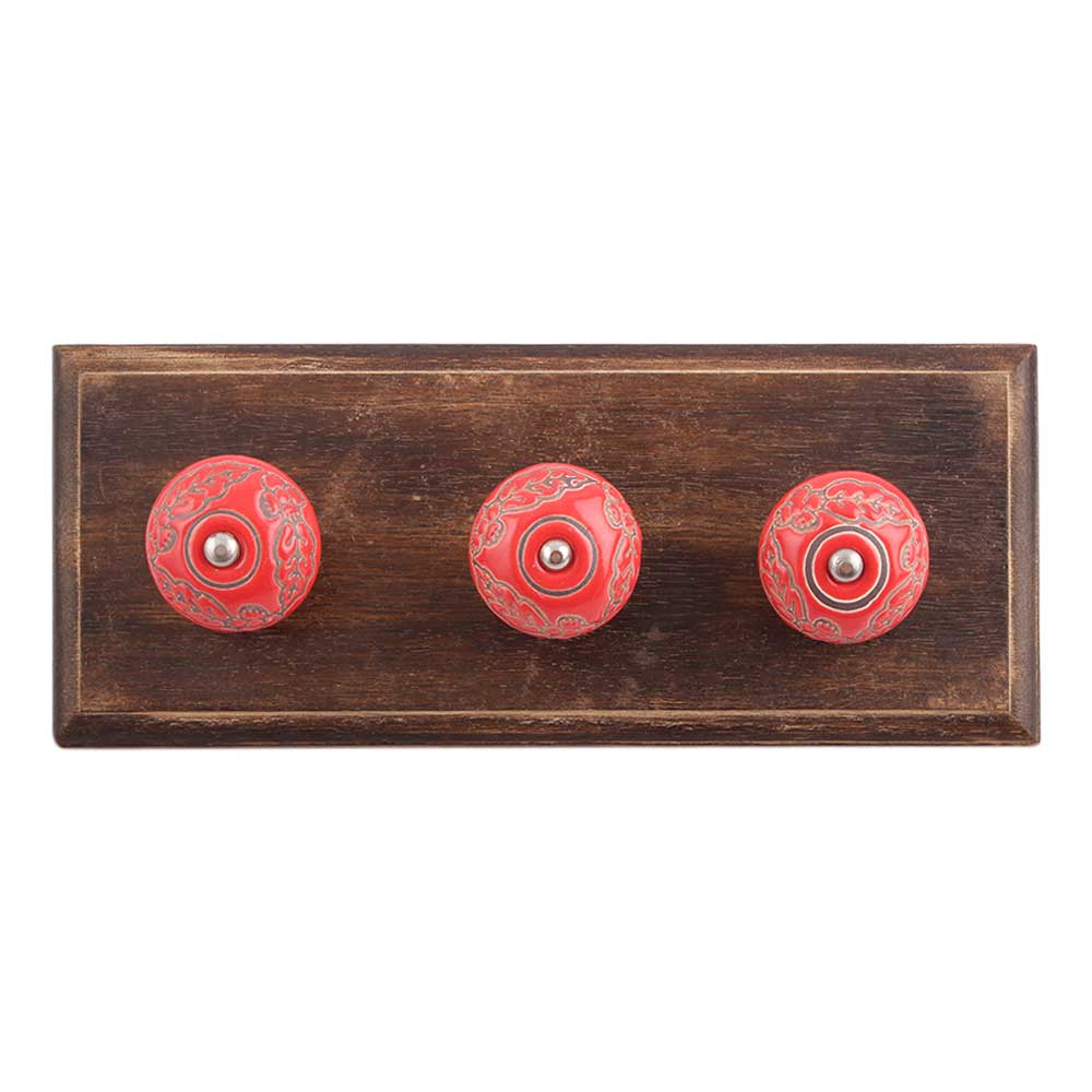 Red Leaf Flower Etched Ceramic Wooden Hooks