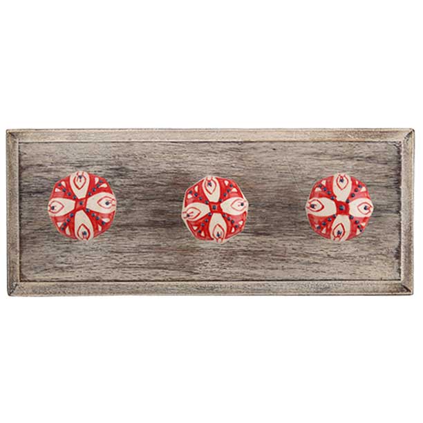 Red Octagon Ceramic Wooden Hook. A Perfect Complement to the Soft Tone of the Wood are these White Traditional Hat & Coat Hook Made of Genuine Porcelain and Brass. It can be use to Hang Jewellery, Leashes, Towels, Scarves, Light Weight Sweaters, Caps Etc.
