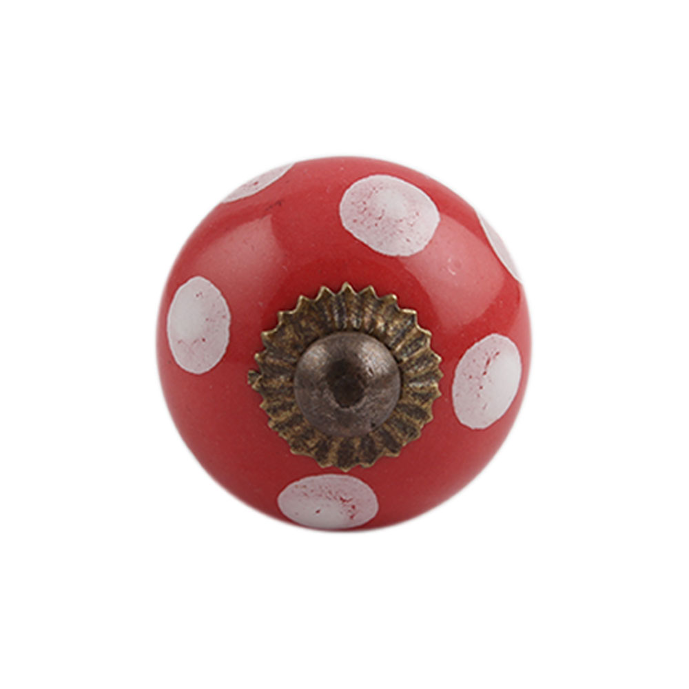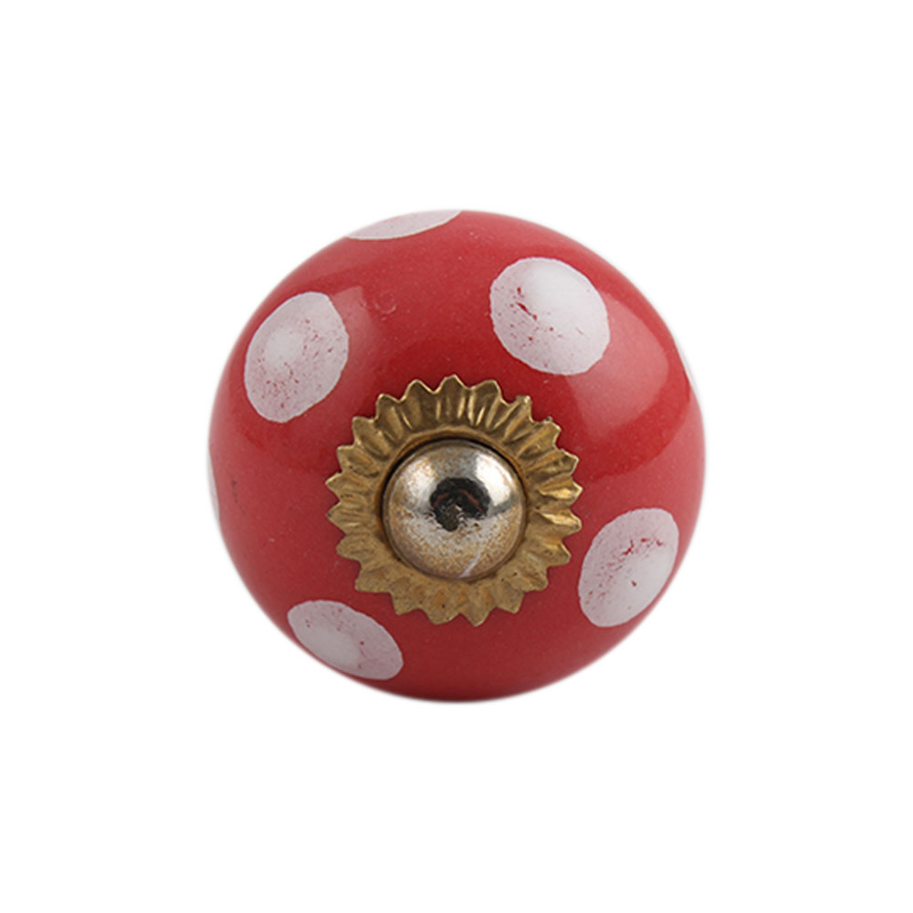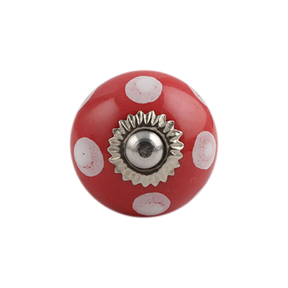 Red Polka Dot Small Ceramic Cabinet Knob