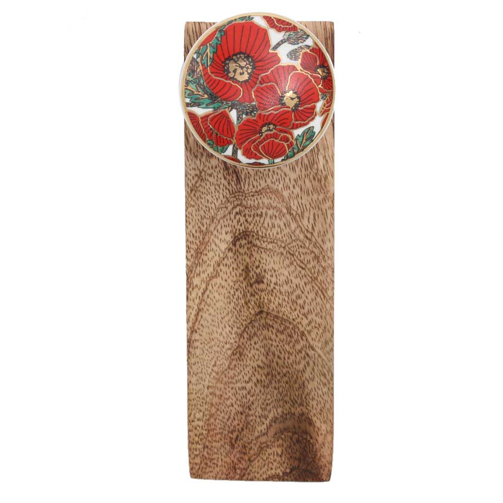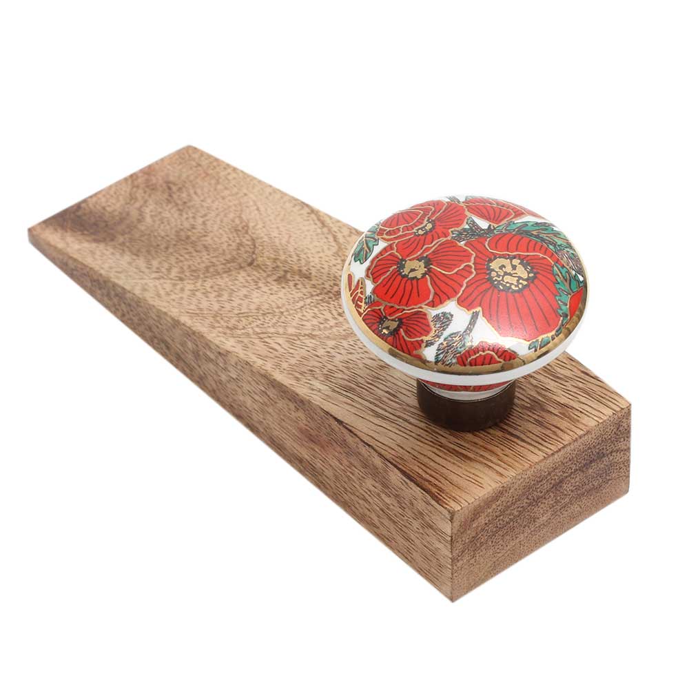 Red Poppy Flower Golden Ceramic Wooden Door Stopper