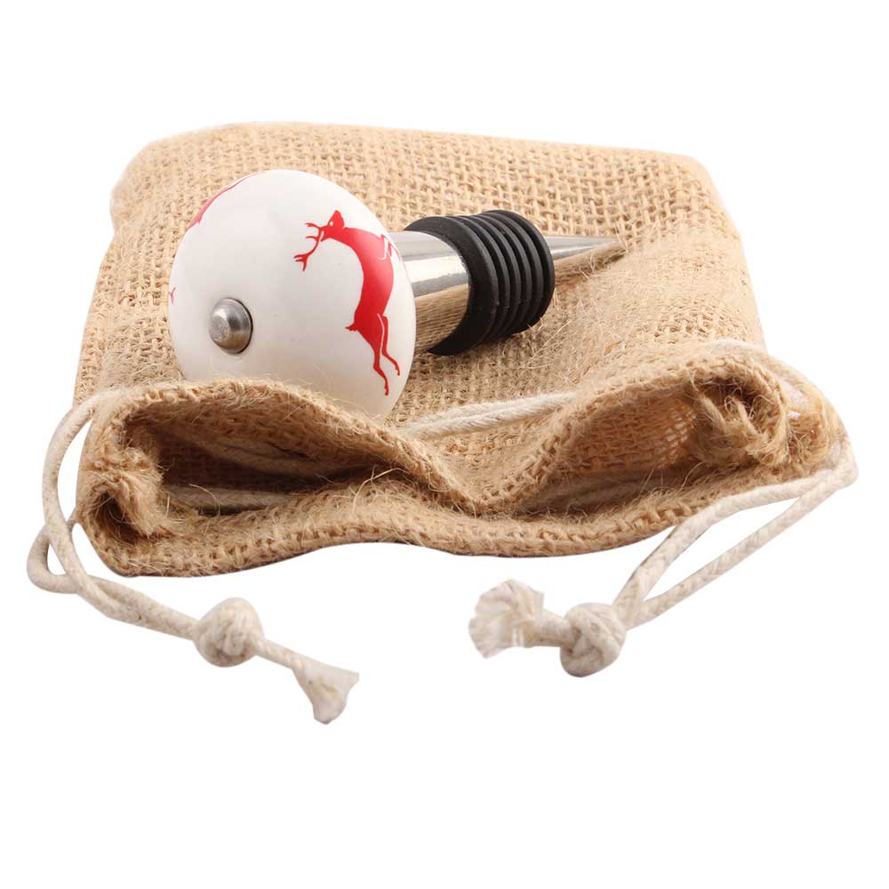 Red Runing Rein Deer Pattern Ceramic Wine Stopper