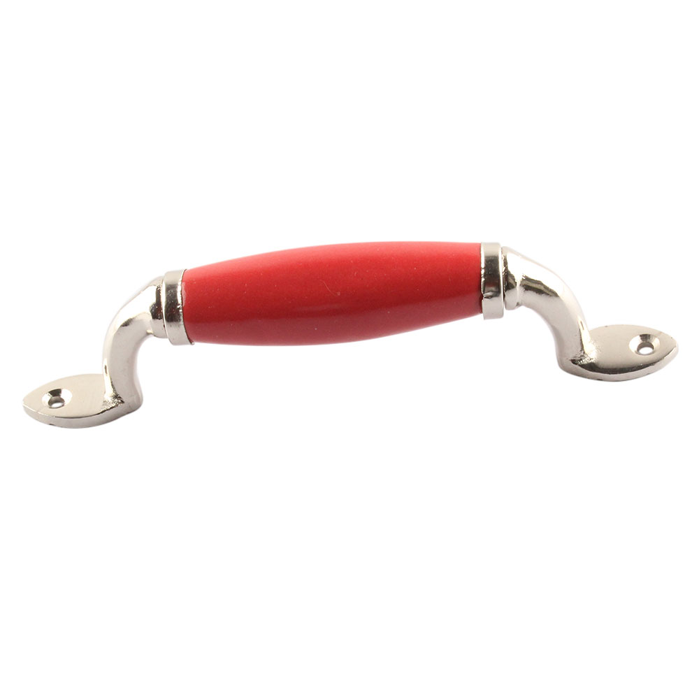 Red Small Ceramic Silver Door Handles. Ideal for Drawer, Dresser, Cabinet, Wardrobe, Cupboard and Almirah.