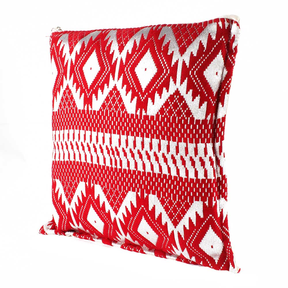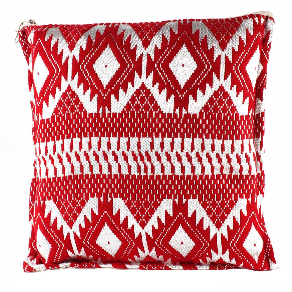 • Red Square Cotton Geometric Pattern Cushion Cover