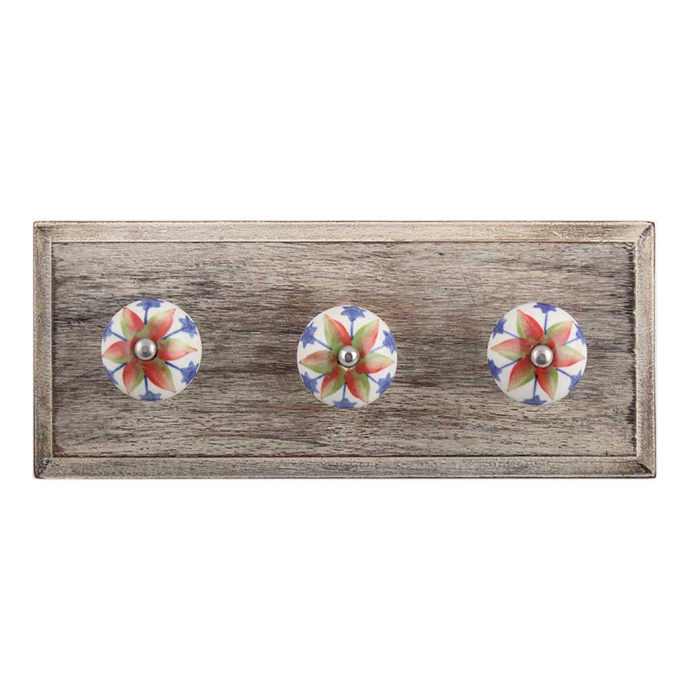 Red Star Ceramic Wooden Hook. A Perfect Complement to the Soft Tone of the Wood are these White Traditional Hat & Coat Hook Made of Genuine Porcelain and Brass. It can be use to Hang Jewellery, Leashes, Towels, Scarves, Light Weight Sweaters, Caps Etc.
